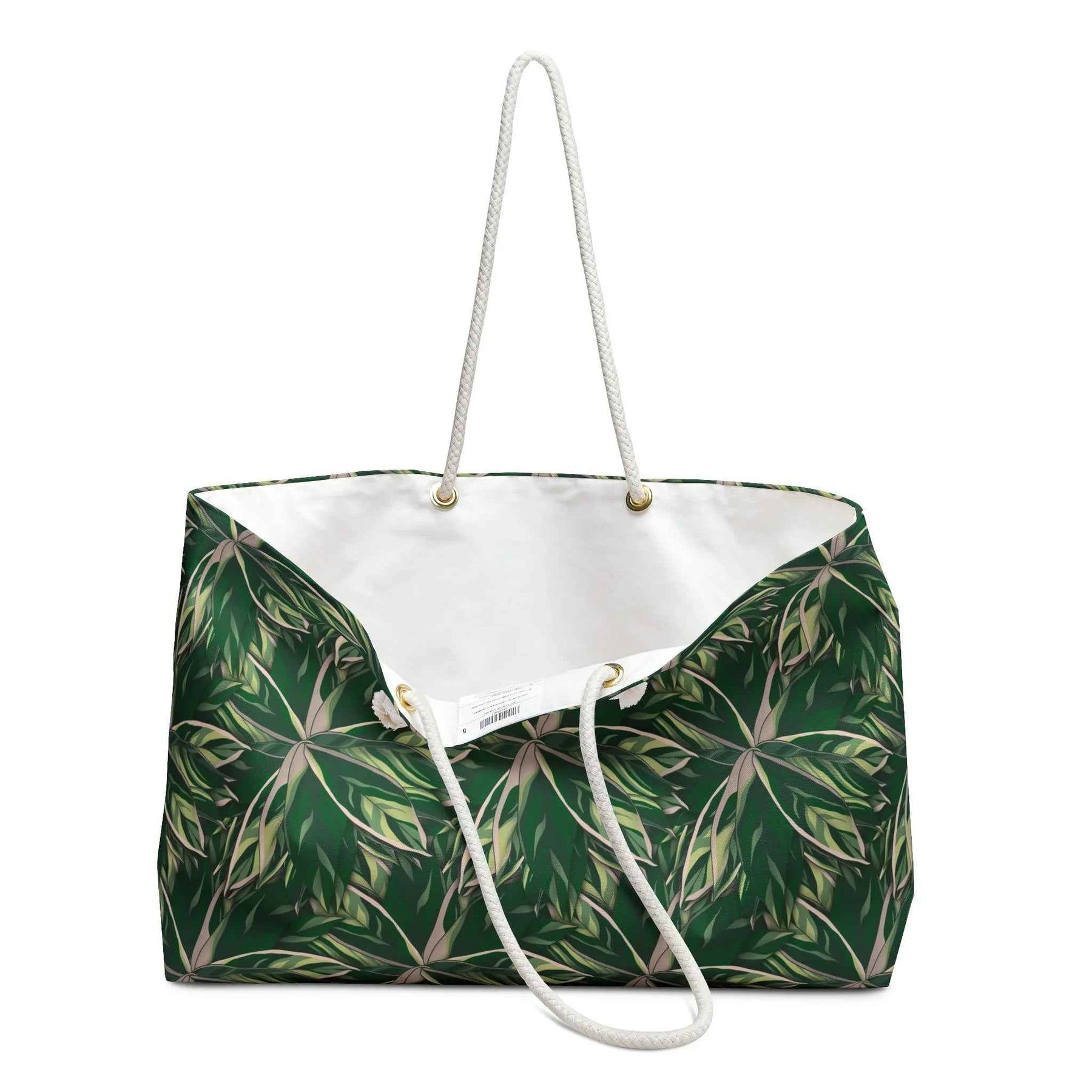 This weekender tote bag is assembled in the USA using globally sourced parts, combining quality craftsmanship with eye-catching design. The t-bottom construction adds stability, preventing tipping when placed down. Whether heading to the shore or exploring new destinations, this tropical print tote provides both practicality and vibrant style in one reliable package.