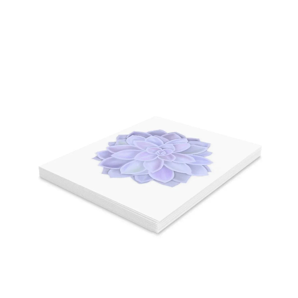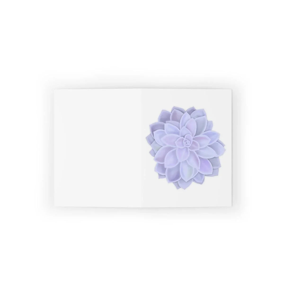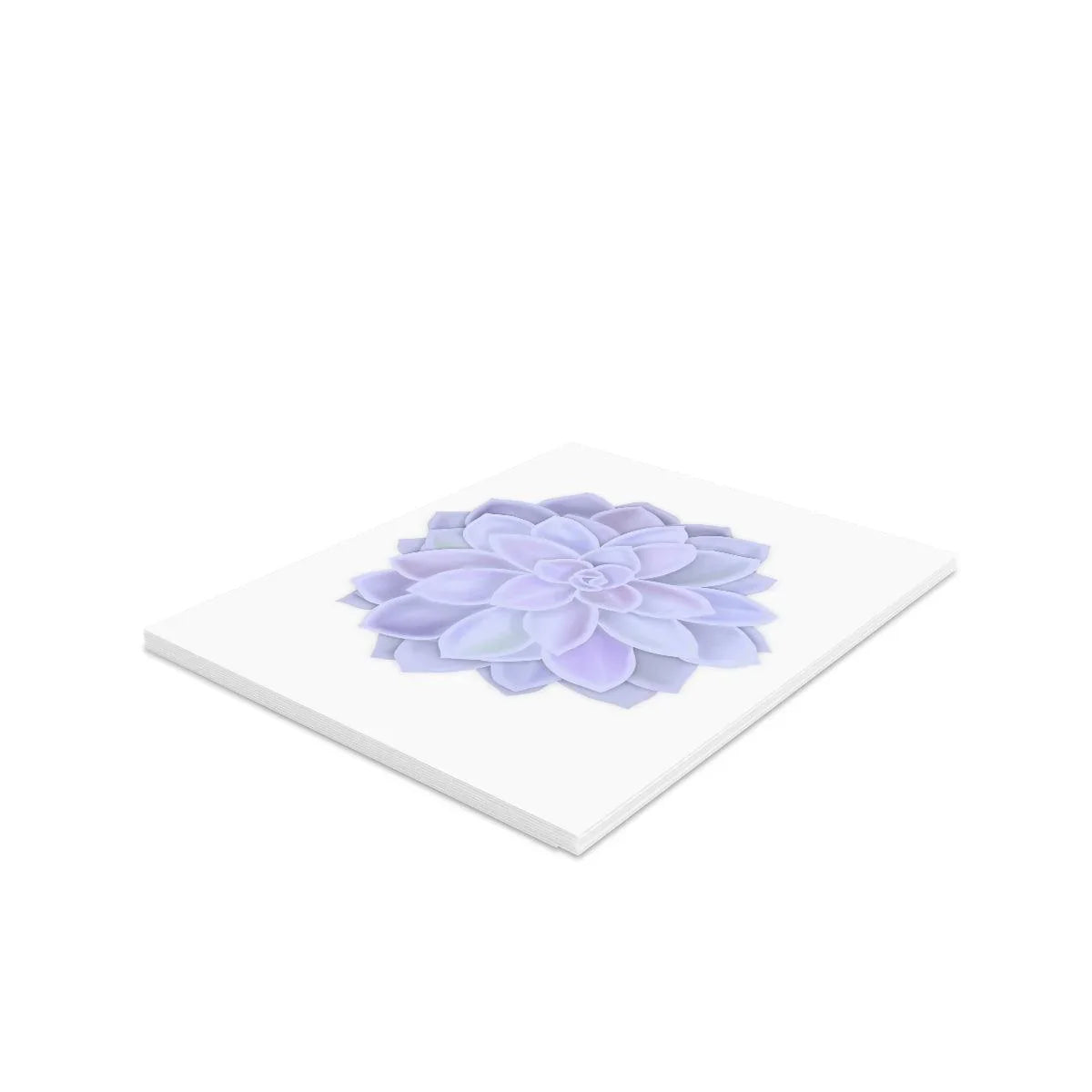This succulent greeting card features exquisite purple Graptopetalum rosette art, capturing the delicate beauty of pastel succulents in a hand-drawn design. The succulent greeting card measures 4.25” x 5.5” and offers a blank inside card for your own message, making it perfect for any occasion. Crafted from robust, uncoated cardstock, these greeting note cards ensure durability during long-distance shipping while maintaining a premium feel. Each pack includes size-matching white envelopes, available in 8-packs, 16-packs, and 24-packs to suit your needs.