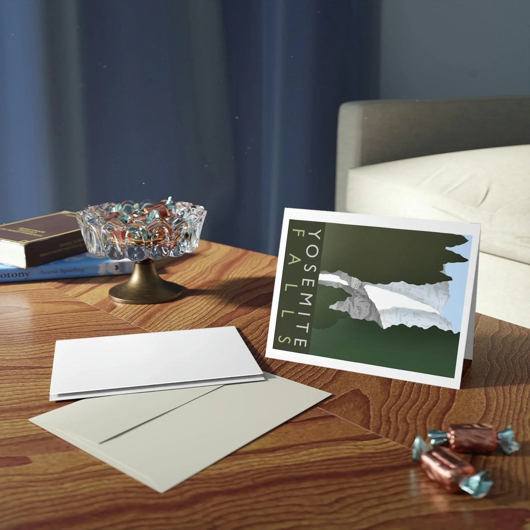 Each waterfall greeting card highlights the majestic Yosemite Falls, which drops a total of 2,425 feet across three tiers—the fifth highest waterfall worldwide. The eco friendly cards provide a tactile natural feel that complements the serene waterfall illustration. These note cards combine artistic quality with practical design, making them an excellent choice for anyone who appreciates nature-inspired stationery.