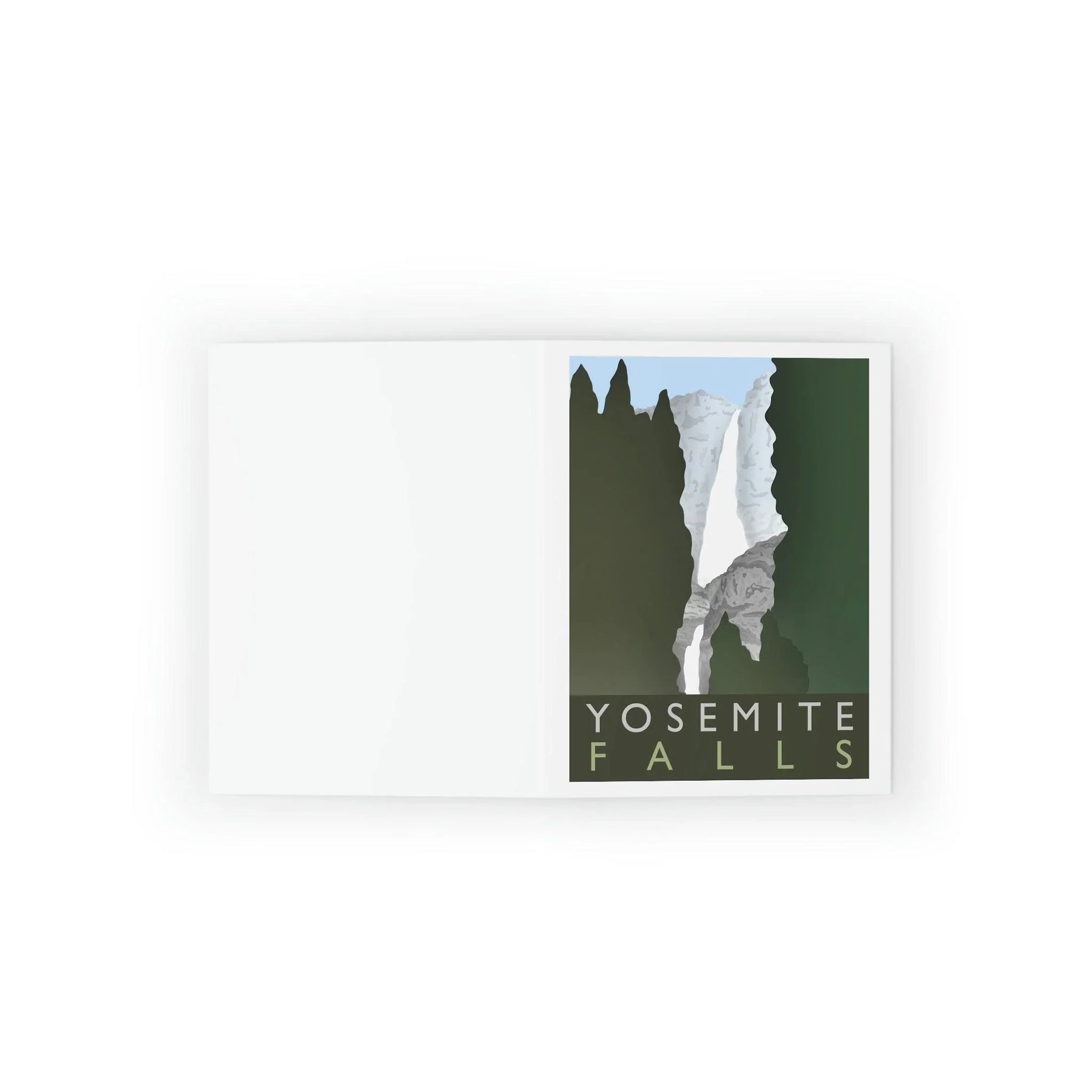 This minimalist greeting card features a stunning Yosemite Waterfall design, capturing the beauty of one of North America's tallest waterfalls. Measuring 4.25 x 5.5 inches, this robust cardstock card delivers durability for safe mailing while showcasing hand-drawn artwork inspired by nature. Ideal for sending heartfelt messages, this blank inside card allows you to express your thoughts freely.