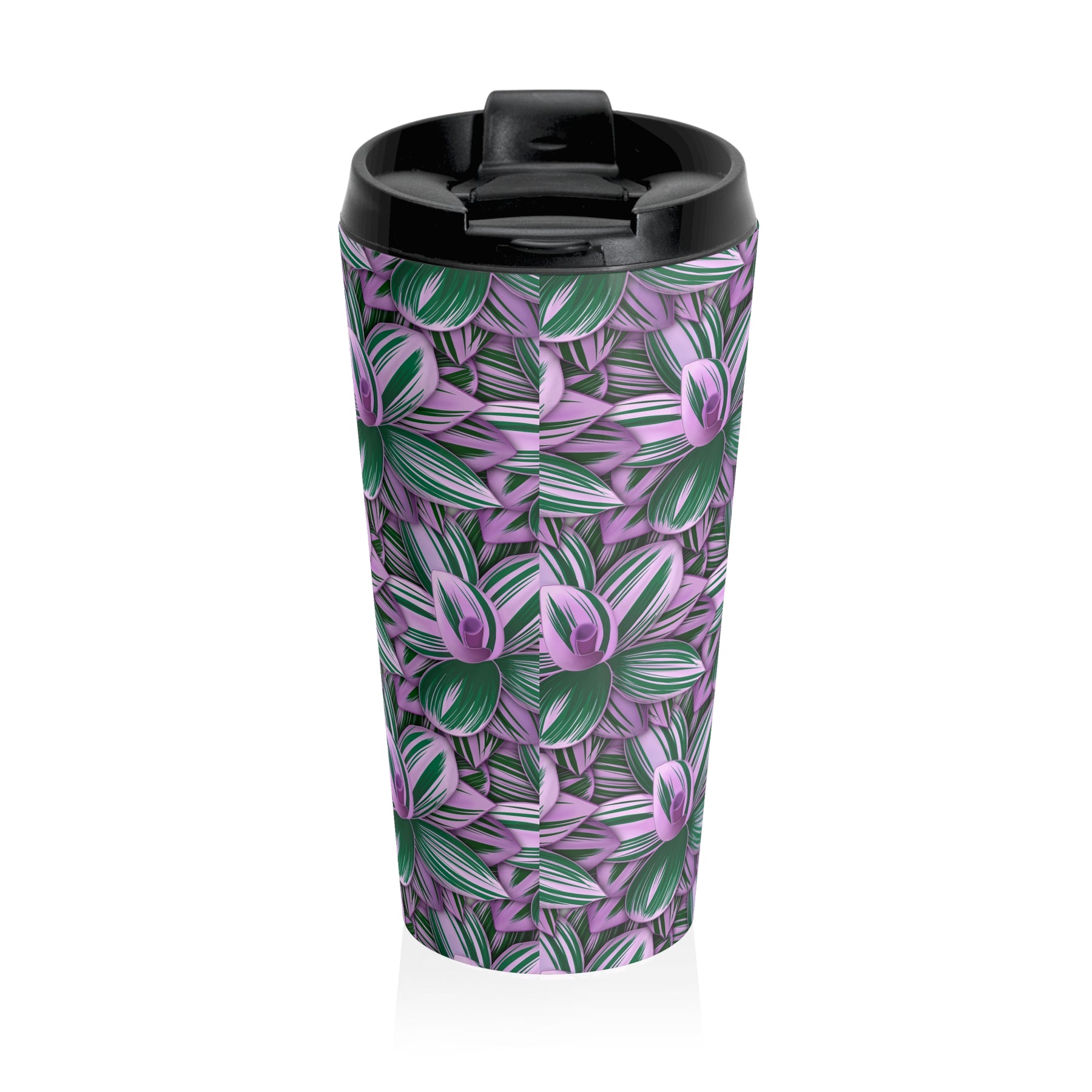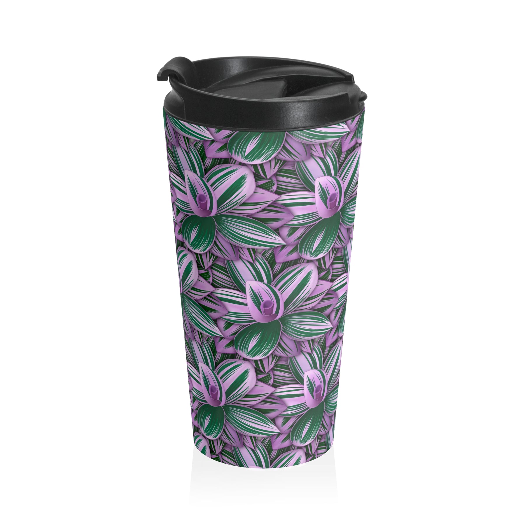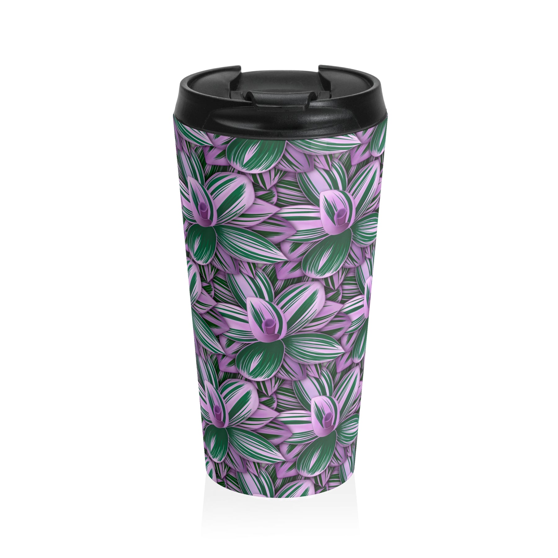The Tradescantia Nanouk tumbler is a vibrant insulated travel mug designed to brighten your daily routine with its variegated foliage print. This stainless steel tumbler features a colorful plant design tumbler pattern inspired by the magenta-purple and cream-striped leaves of the Tradescantia Nanouk, making it an ideal botanical style cup for office drinkware or outdoor adventures. Crafted from high-quality stainless steel, this vacuum insulated cup keeps drinks hot cold for hours, ensuring your coffee or tea stays at the perfect temperature whether you're at work or on the go.