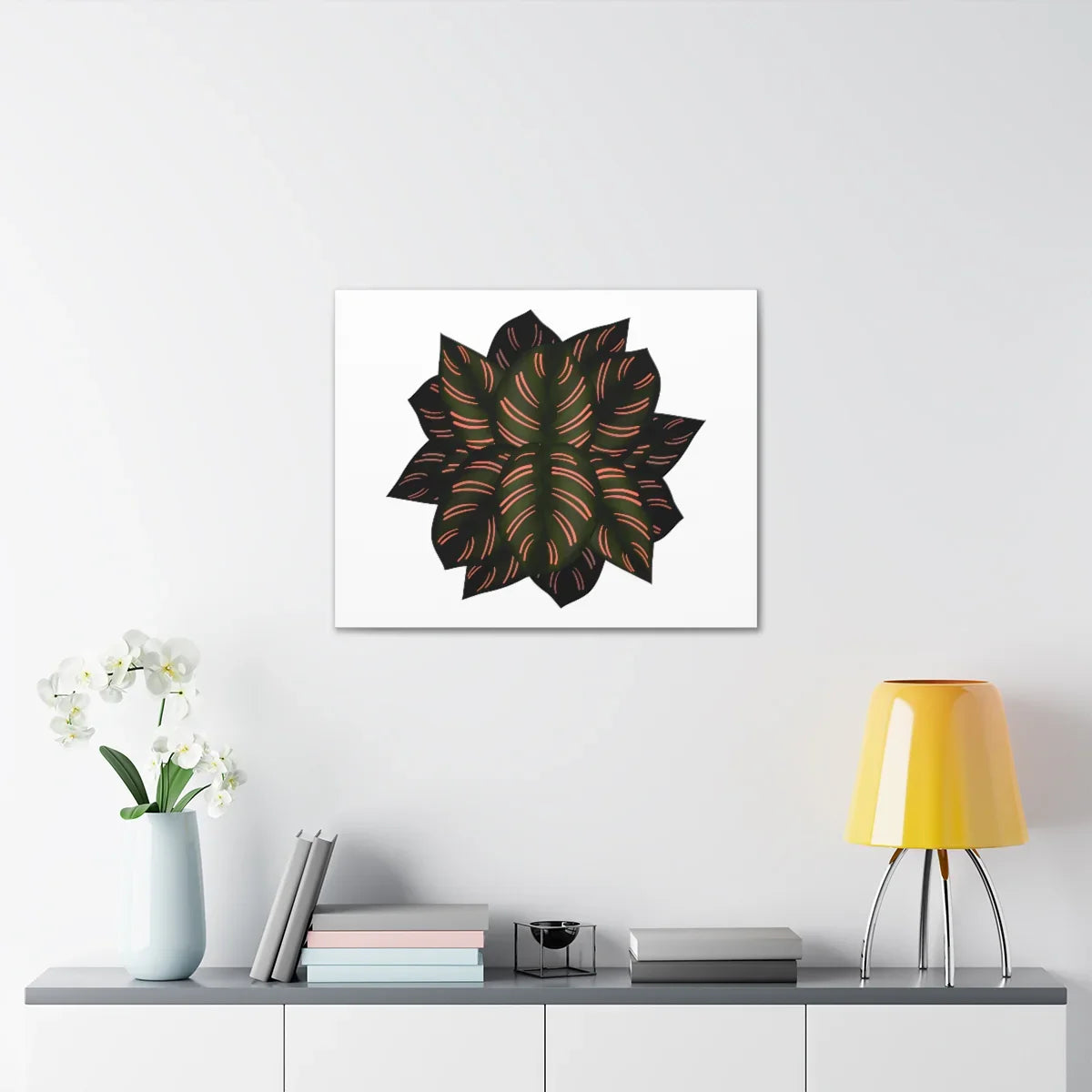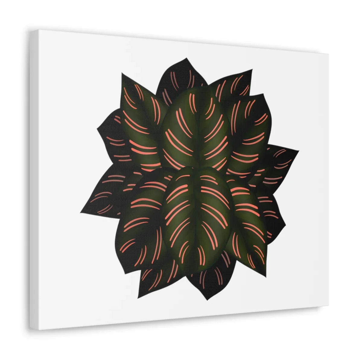 The Calathea Pinstripe Canvas is a stunning botanical canvas art piece designed to bring vibrant natural beauty into your living space. Featuring hand-drawn artwork of the Calathea plant, this indoor canvas print highlights the unique silvery to pink leaf veins that resemble delicate pinstripes, making it an eye-catching pink leaf wall decor ideal for modern botanical decor enthusiasts. Printed on stretched cotton canvas with a matte finish, this floral wall hanging offers a smooth surface that enhances color depth and detail for exceptional visual impact.