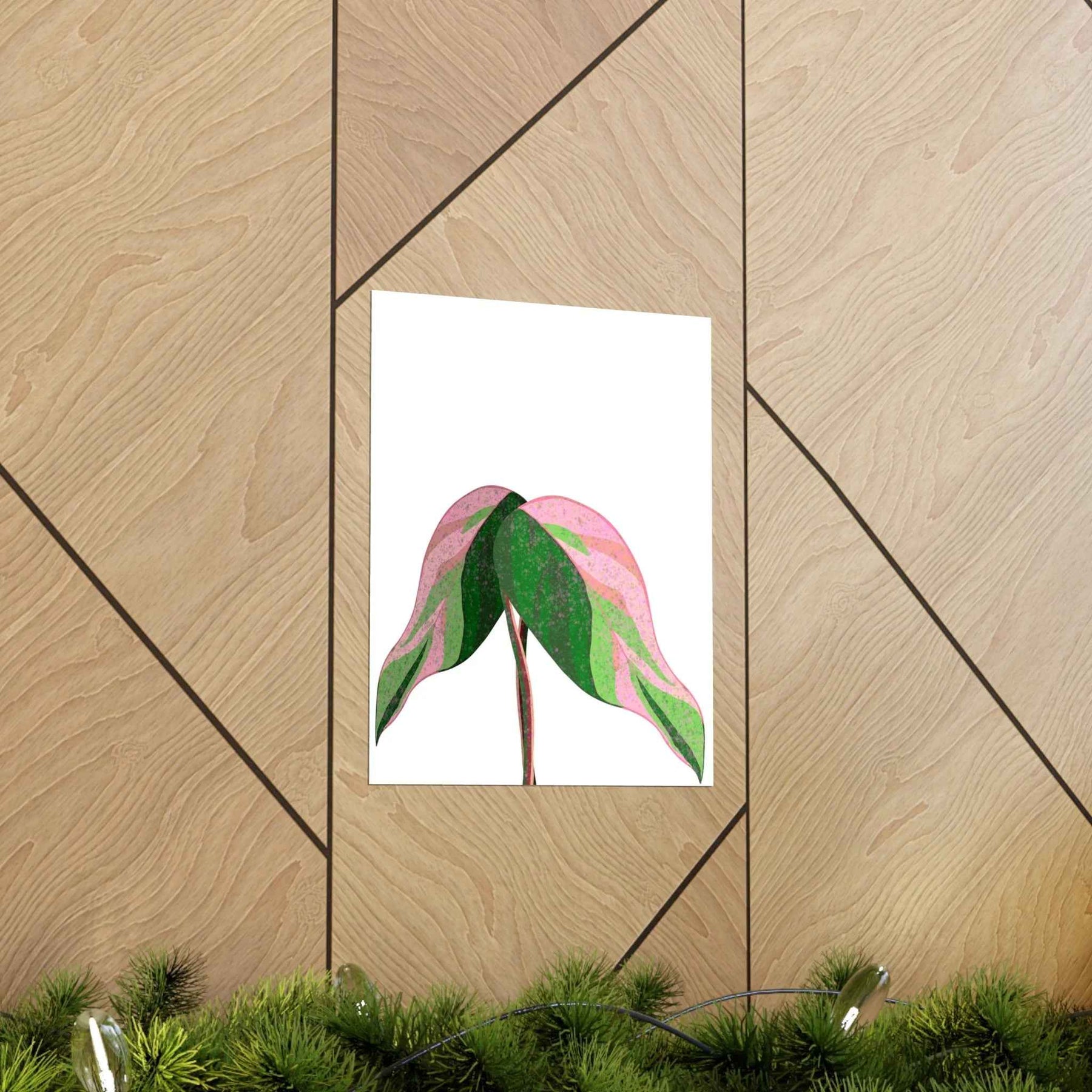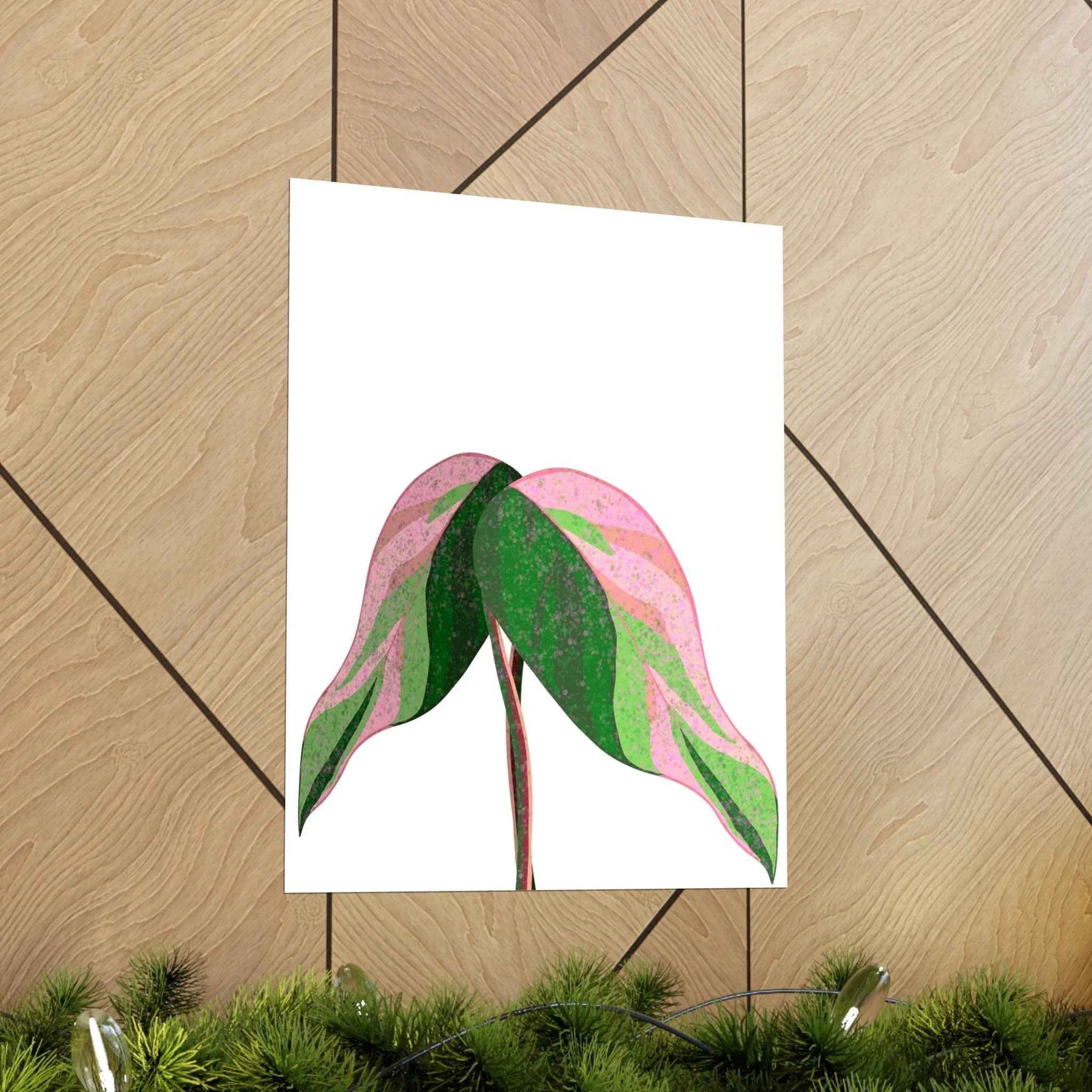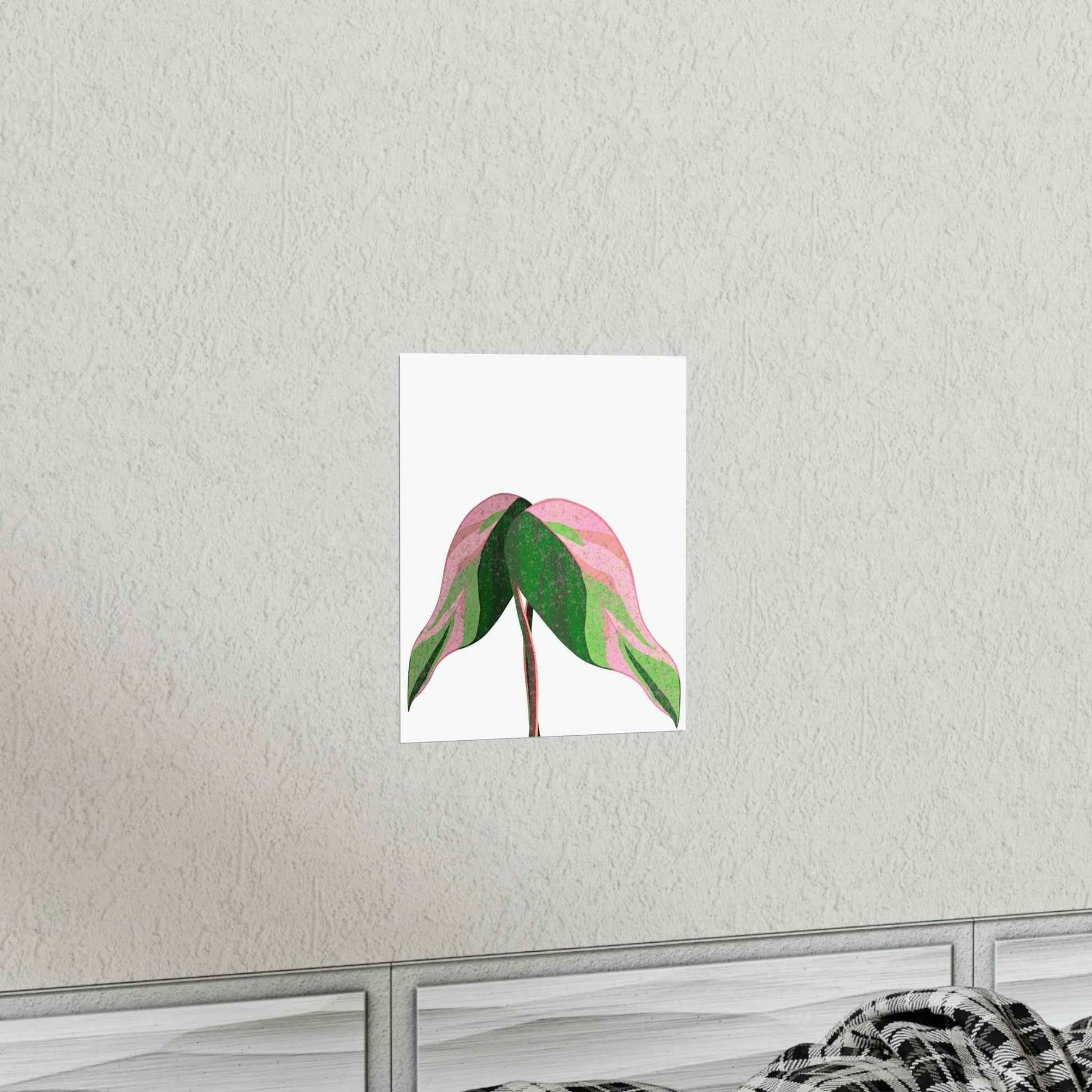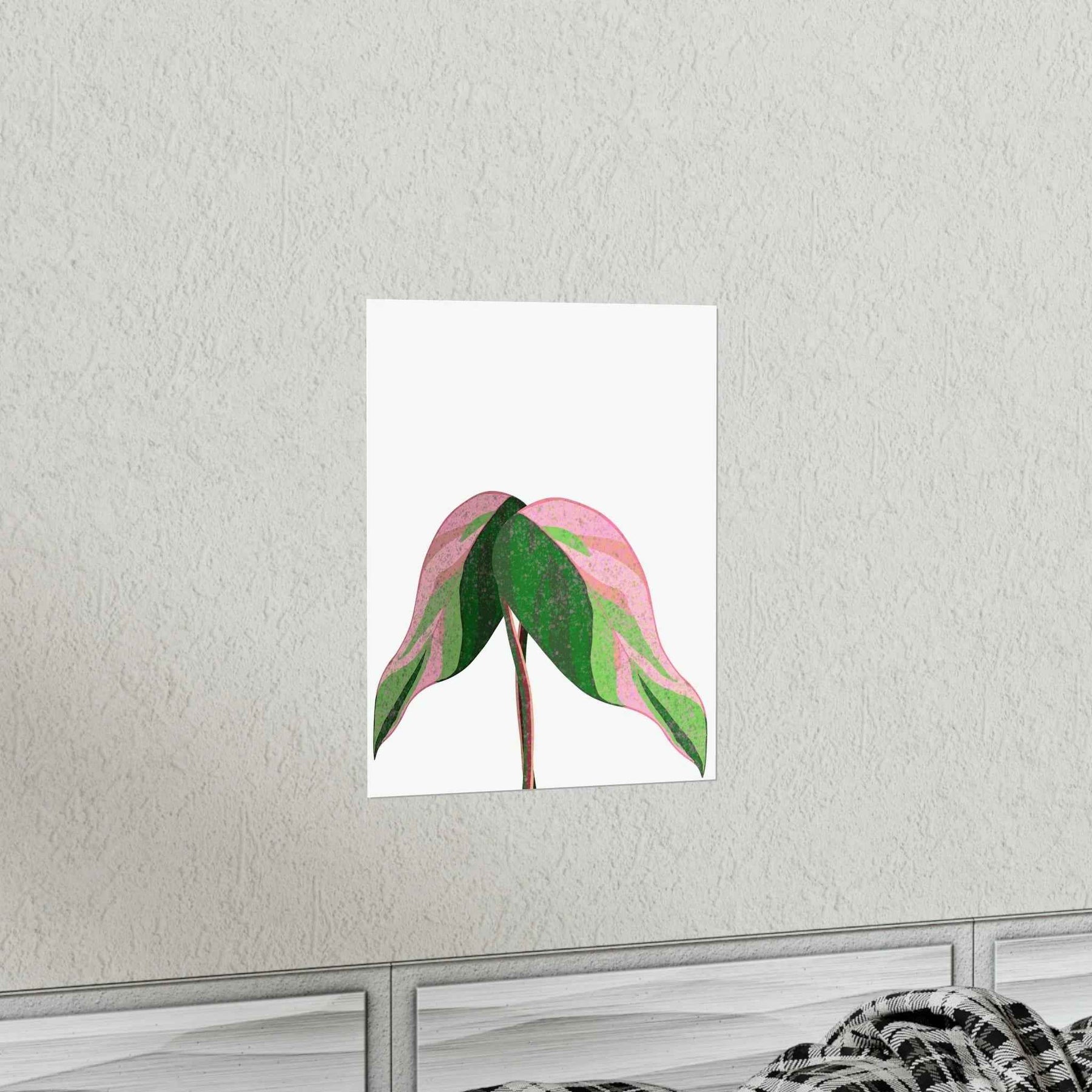 - Hand-drawn pink leaf artwork showcasing the unique variegated plant wall decor