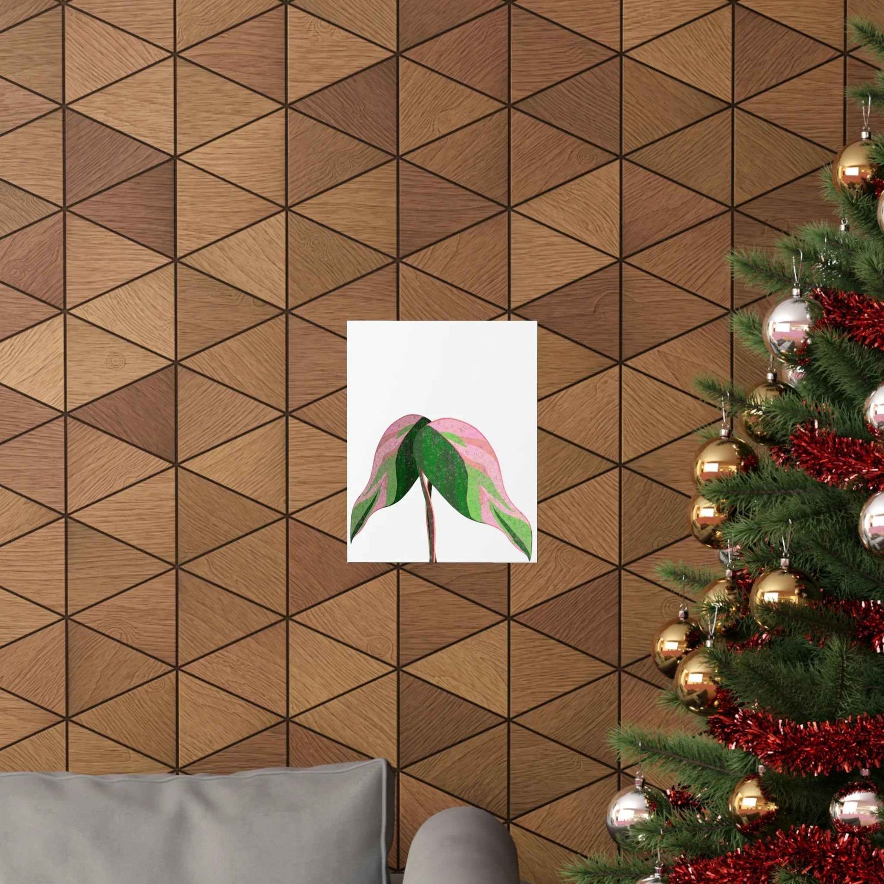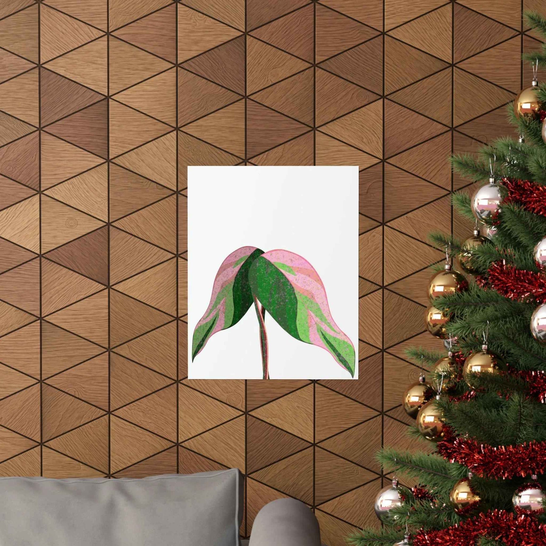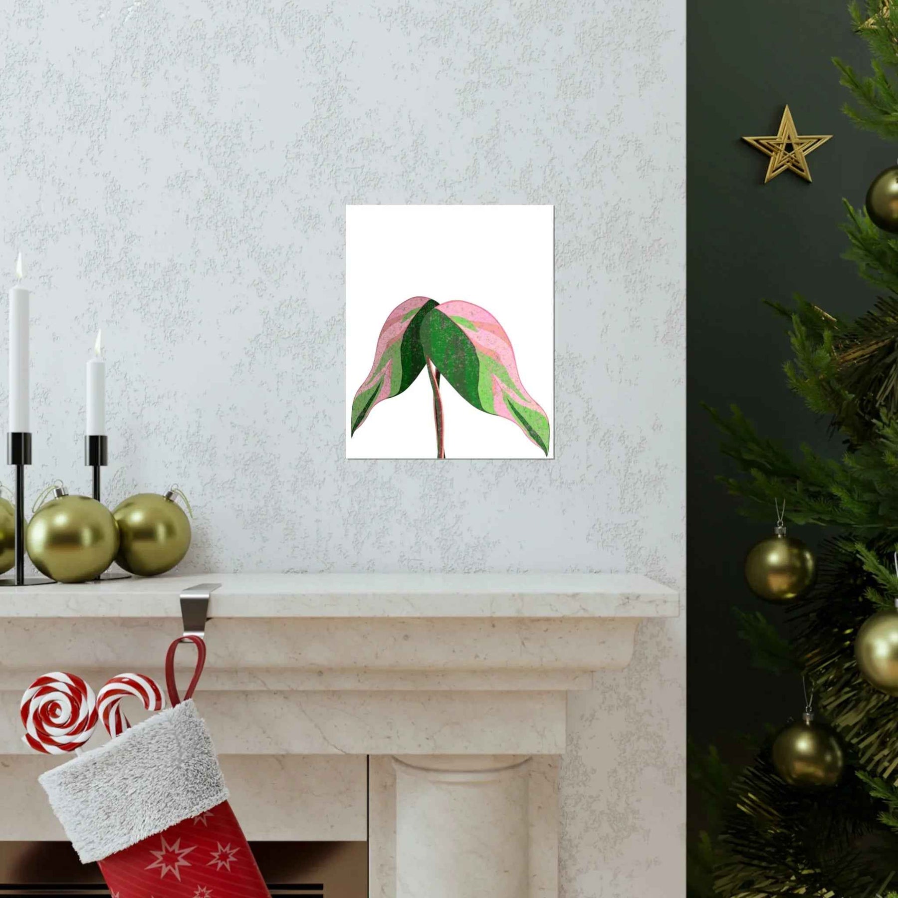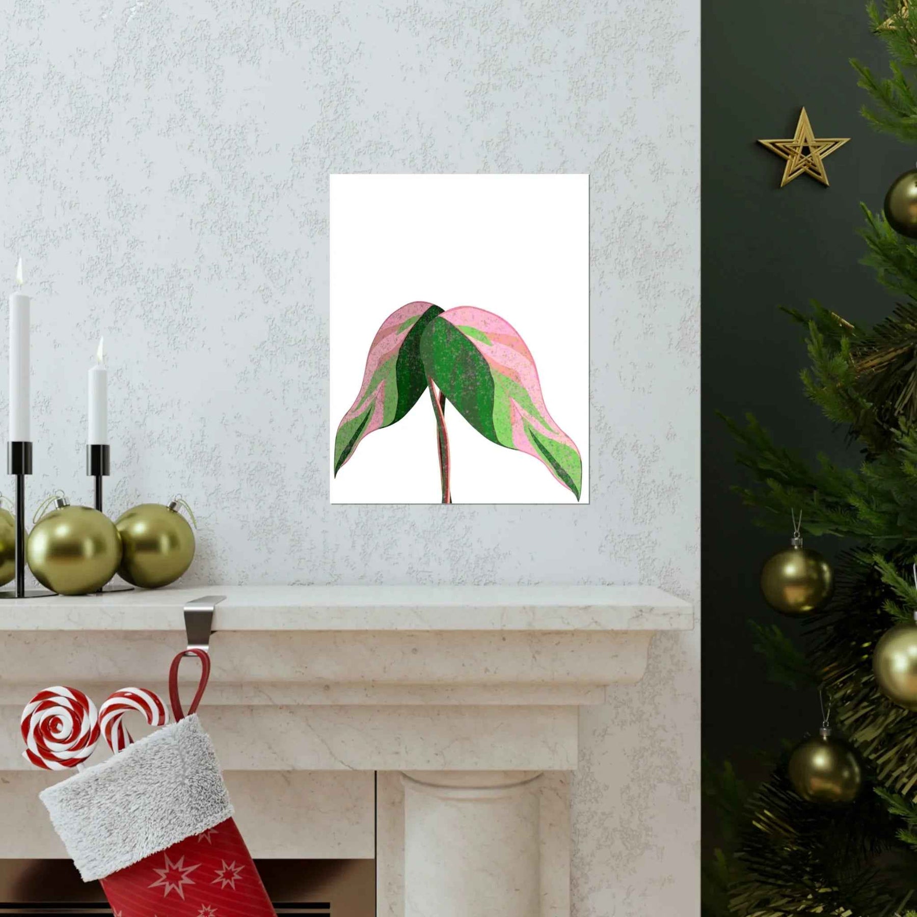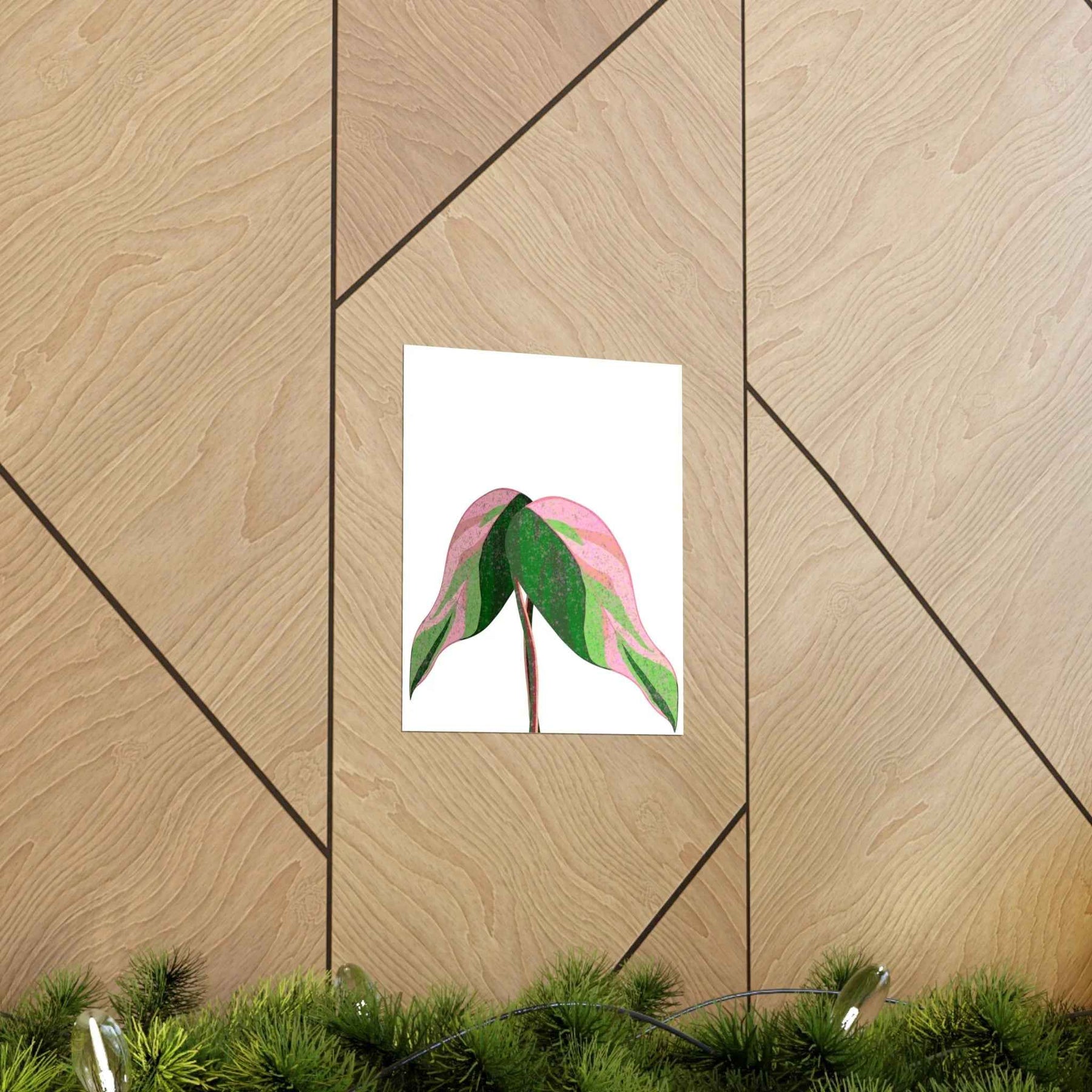 - Hand-drawn pink leaf artwork showcasing the unique variegated plant wall decor