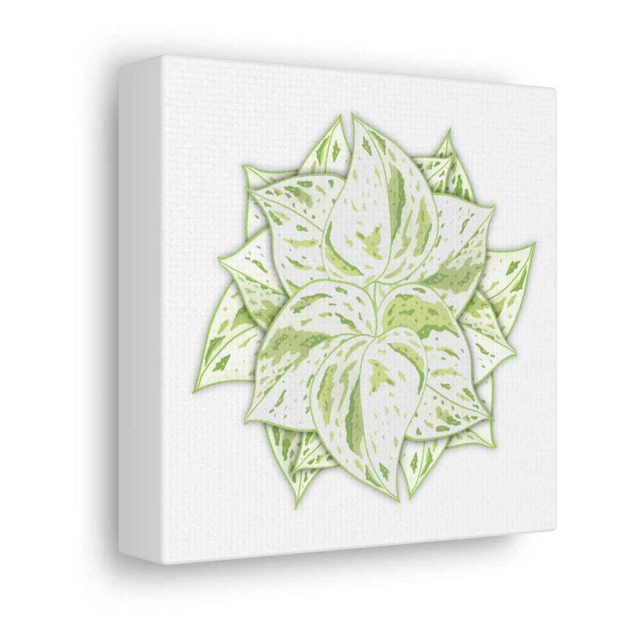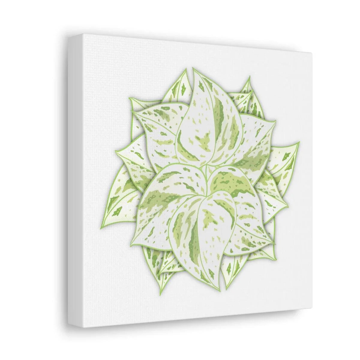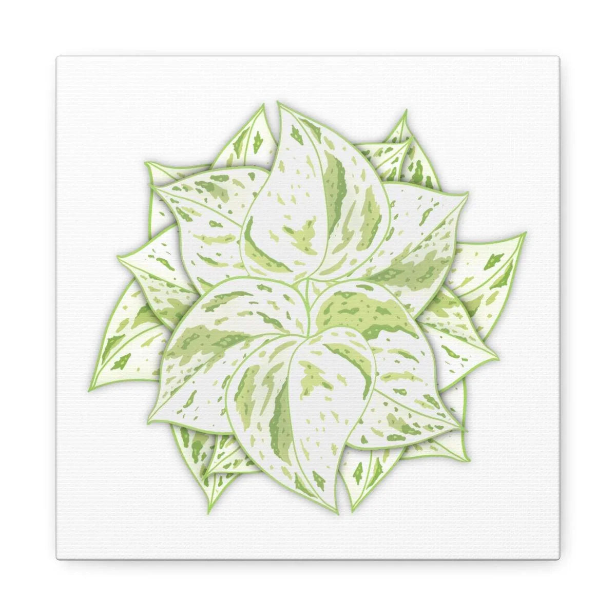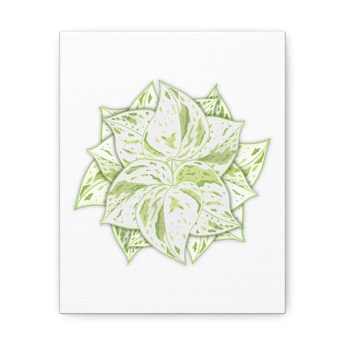 The Snow Queen Pothos Canvas showcases stunning variegated leaf patterns with snowy white foliage and delicate green splashes, making it a perfect botanical canvas print for enhancing any indoor space. This indoor plant print captures the translucent leaf design with hand-drawn detail on durable cotton canvas, delivering exceptional clarity and a smooth matte finish that brightens your home decor canvas. Created by Laura Christine Photography & Design, this modern wall hanging combines artistic quality with lasting durability for plant lovers seeking refined white foliage art.