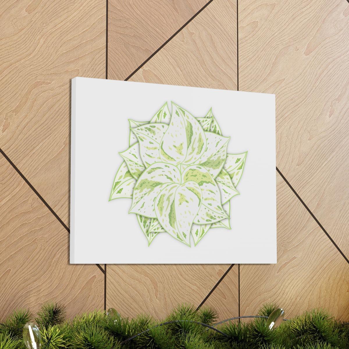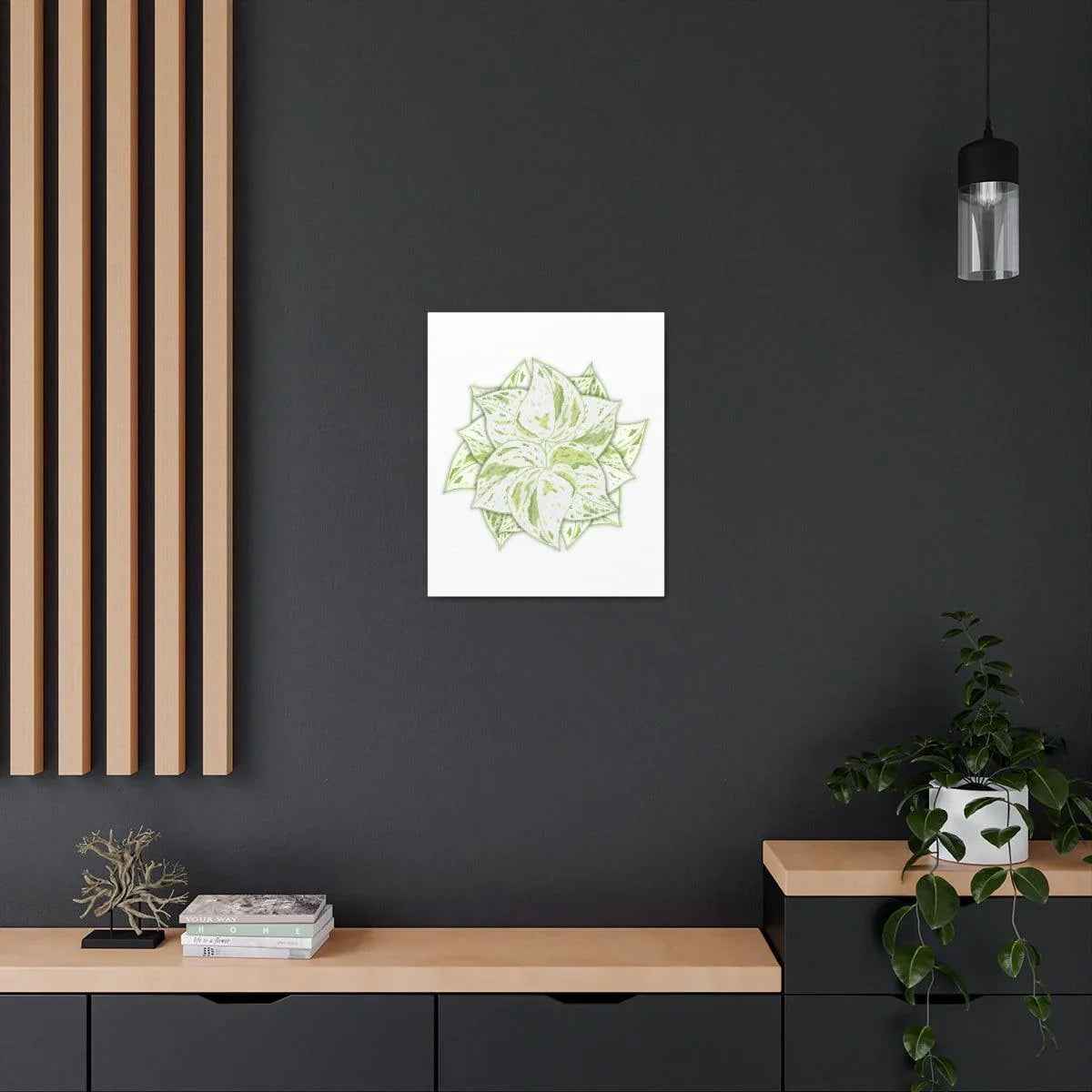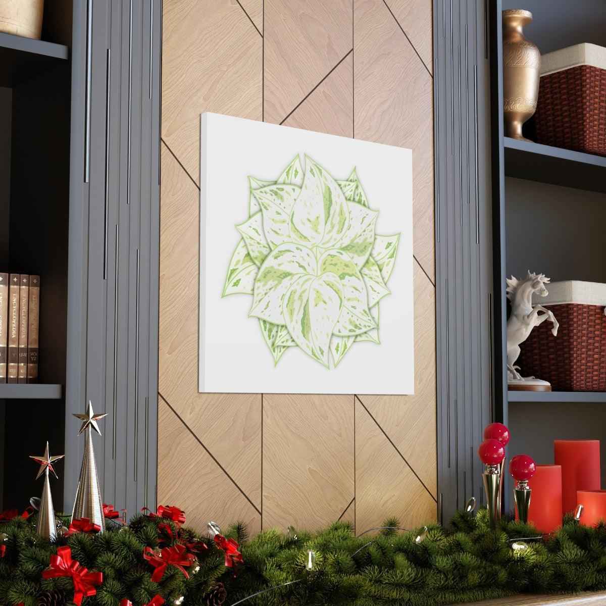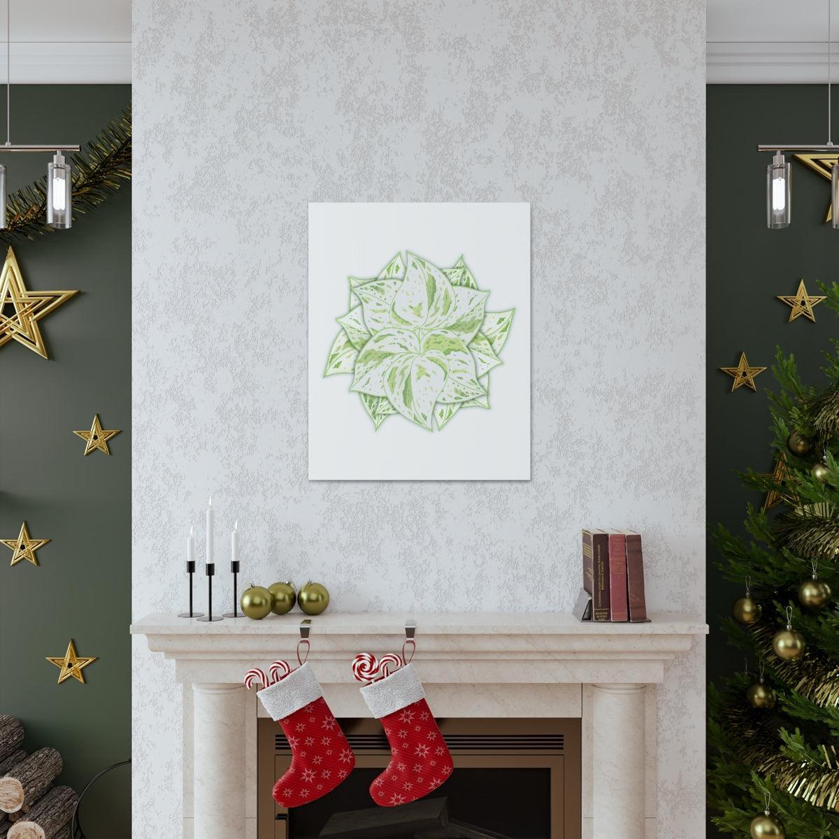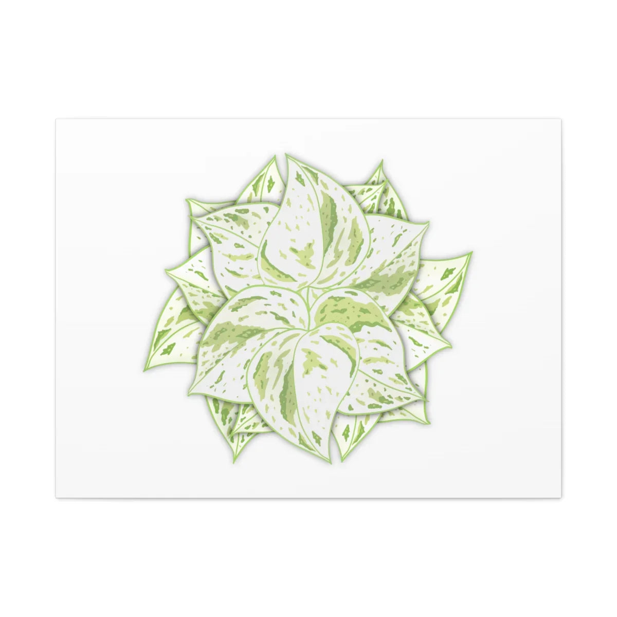 The Snow Queen Pothos Canvas showcases stunning variegated leaf patterns with snowy white foliage and delicate green splashes, making it a perfect botanical canvas print for enhancing any indoor space. This indoor plant print captures the translucent leaf design with hand-drawn detail on durable cotton canvas, delivering exceptional clarity and a smooth matte finish that brightens your home decor canvas. Created by Laura Christine Photography & Design, this modern wall hanging combines artistic quality with lasting durability for plant lovers seeking refined white foliage art.