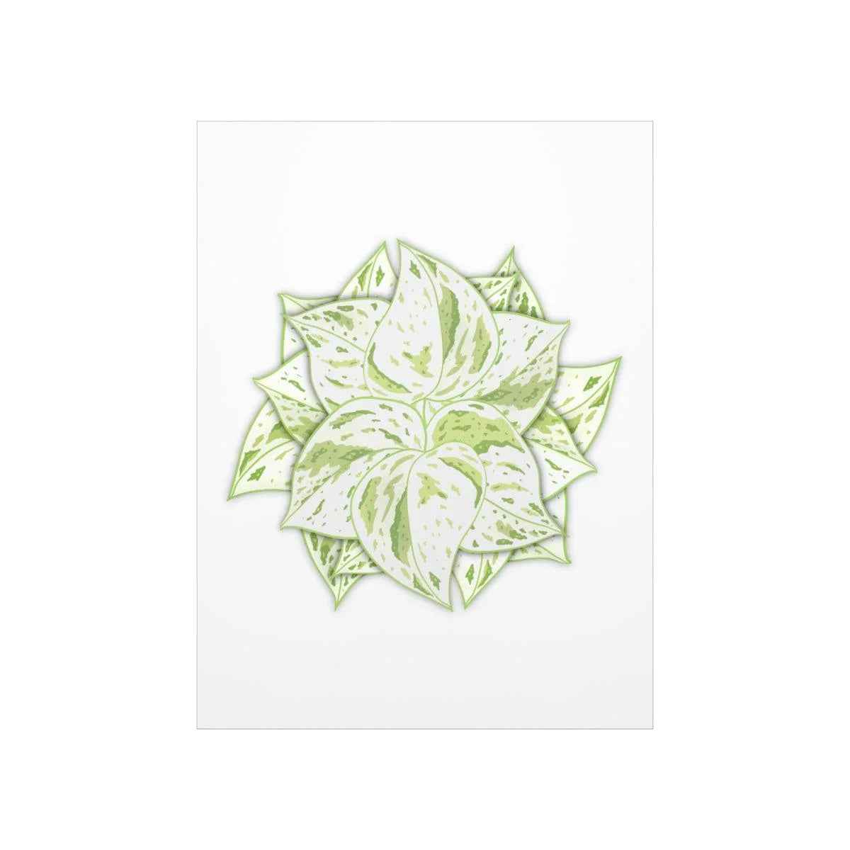 The Snow Queen Pothos Print showcases exquisite variegated pothos art, capturing the beauty of snowy white foliage with delicate green splashes. This fine art botanical piece features hand-drawn pothos leaf artwork printed on museum grade paper (175gsm), offering a translucent leaf poster effect that brings indoor plant decor to life. Perfect as botanical wall art, this white foliage print adds elegance and freshness to any space.