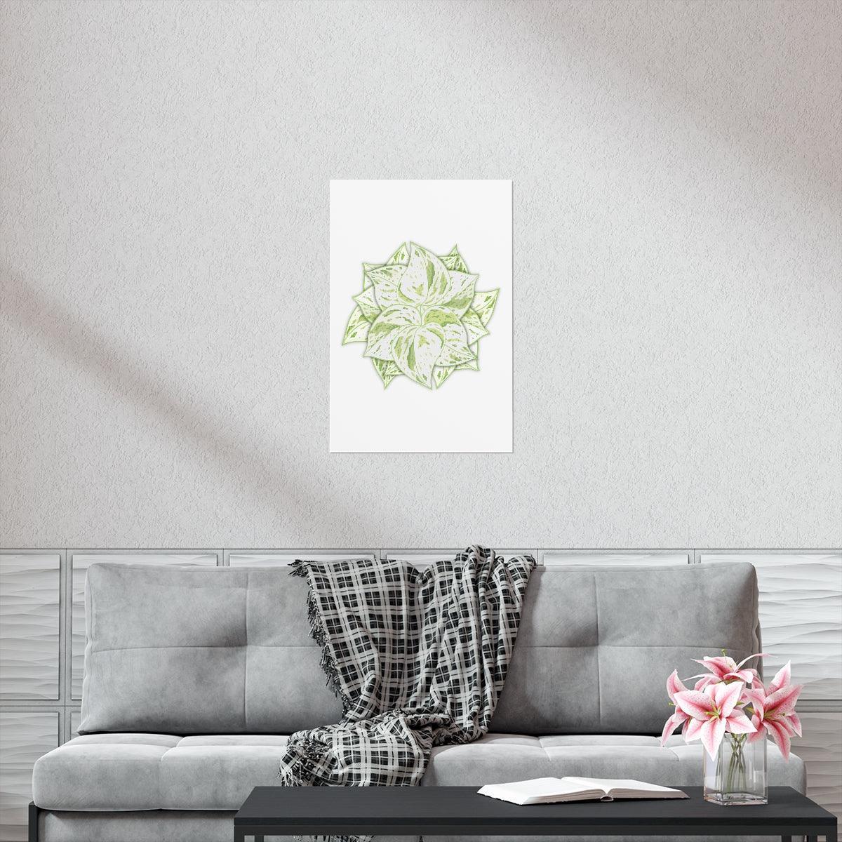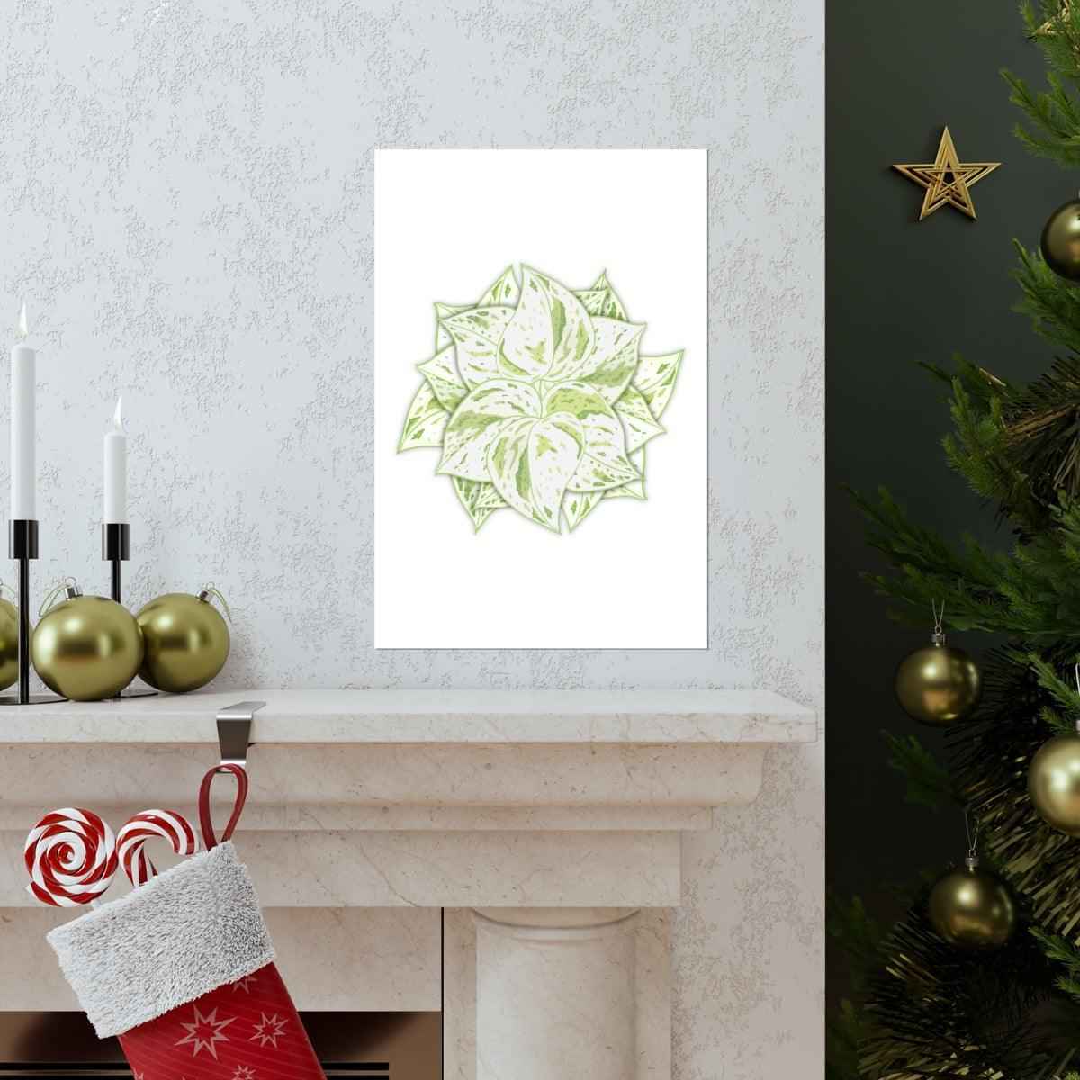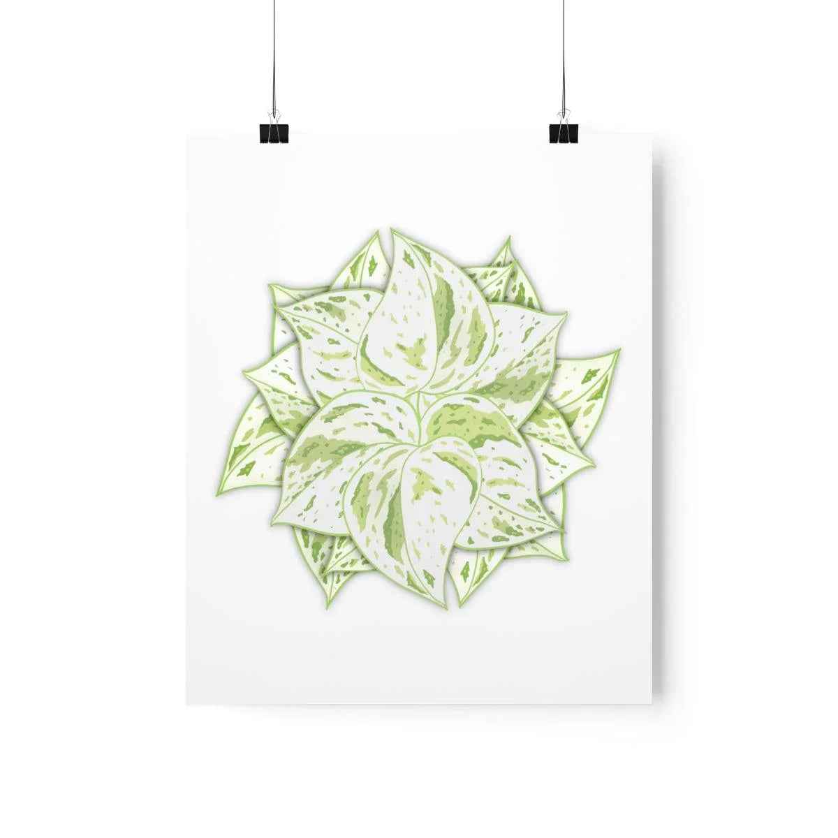 This indoor plant poster is ideal for adding a fresh, natural vibe to your home or office. The Snow Queen Pothos Print blends artistic craftsmanship with botanical accuracy, making it a standout piece in any collection of plant poster prints or decorative plant prints. Elevate your wall decor with this unique white foliage print that reflects the delicate beauty of nature indoors.