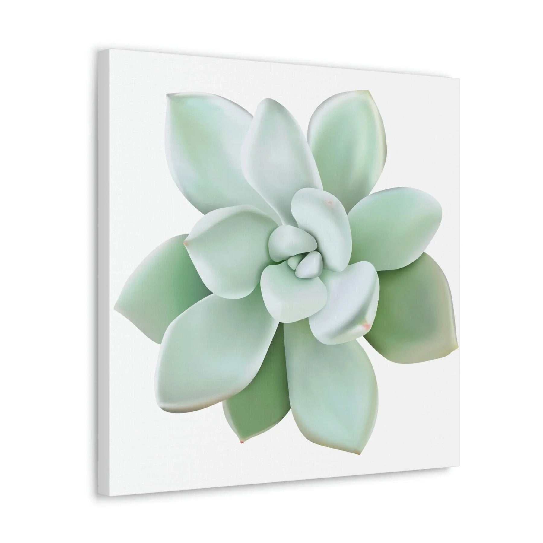 This succulent canvas art features a hand-drawn Pachyveria Haagei print on a matte finish cotton canvas, designed to enhance your indoor plant decor with botanical wall art that brings nature’s beauty into your home living wall decor. The pastel succulent artwork showcases the powder blue leaf canvas with silvery blue, lance-shaped leaves arranged in a delicate rosette, creating a modern plant illustration that adds subtle elegance to any room.