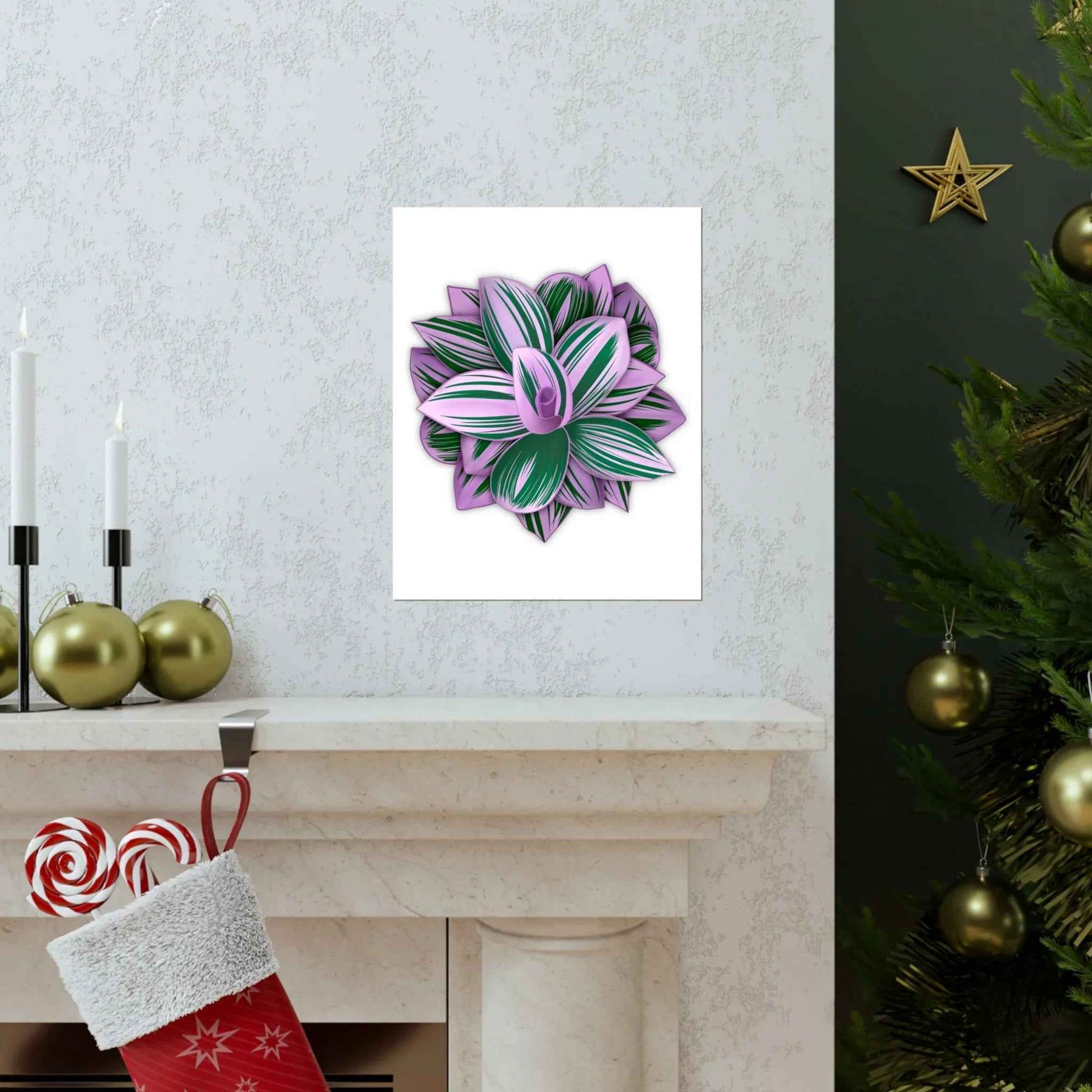This botanical wall art captures the delicate pink foliage artwork and magenta leaf decor of the Tradescantia Nanouk plant with precise detail. The fine art paper poster offers a tactile quality that elevates the visual experience. Each variegated leaf poster is carefully produced to highlight the vivid hues and intricate patterns found in this stunning species. Its combination of artistic craftsmanship and high-quality materials makes it an excellent choice for those who appreciate nature-inspired prints that stand out.
