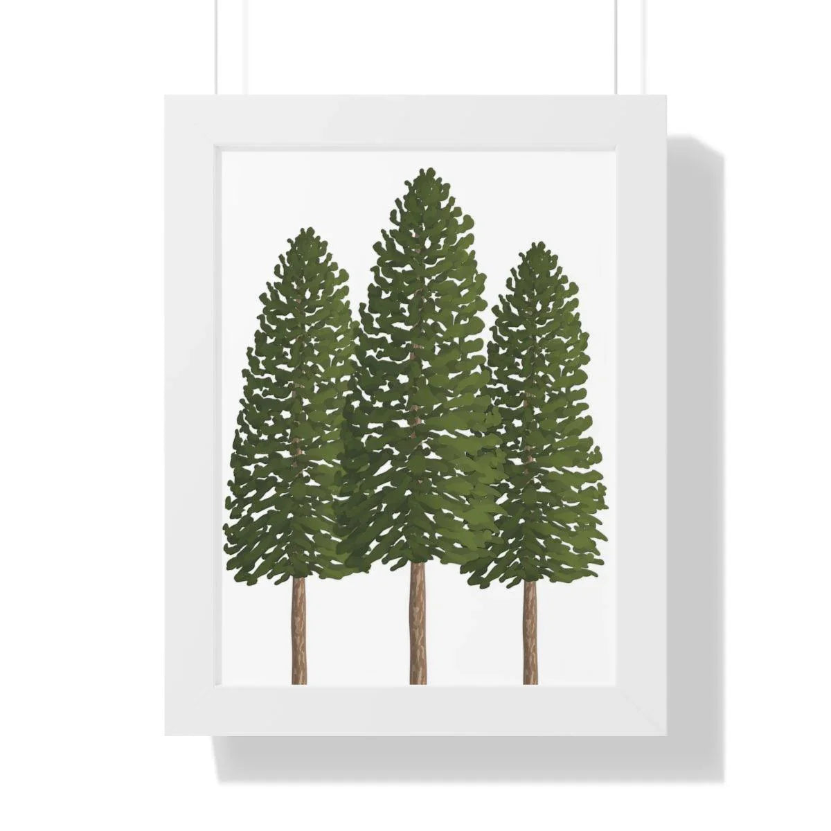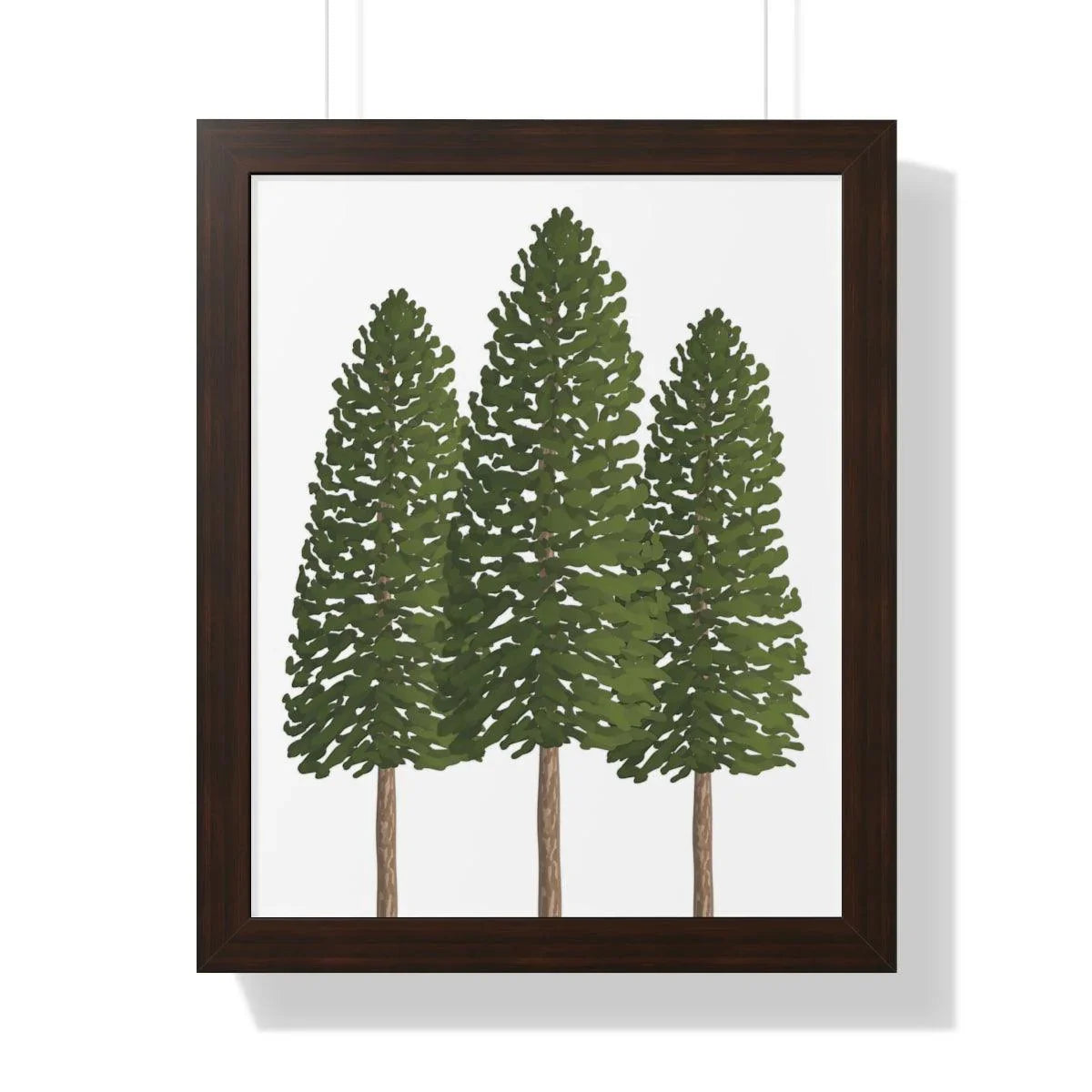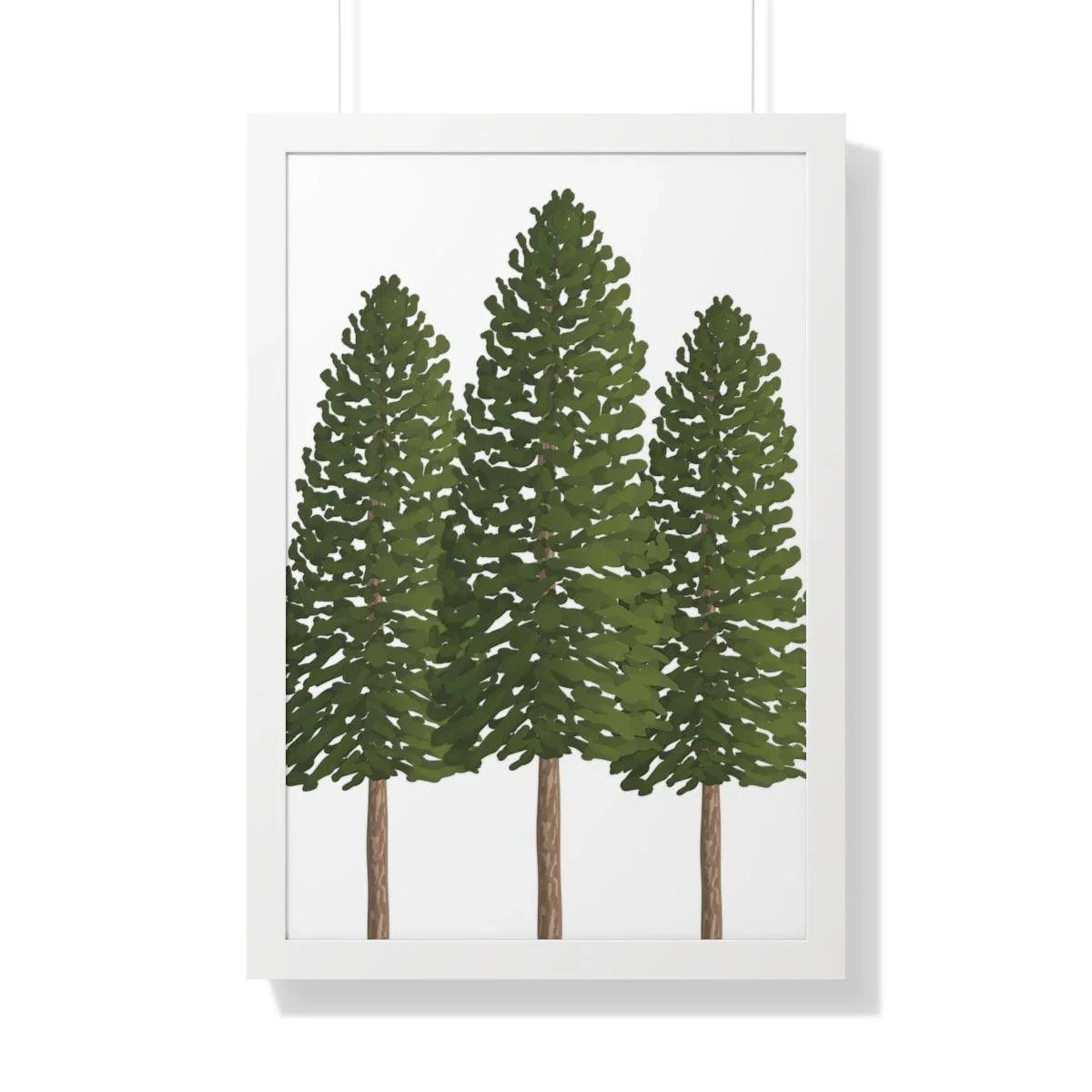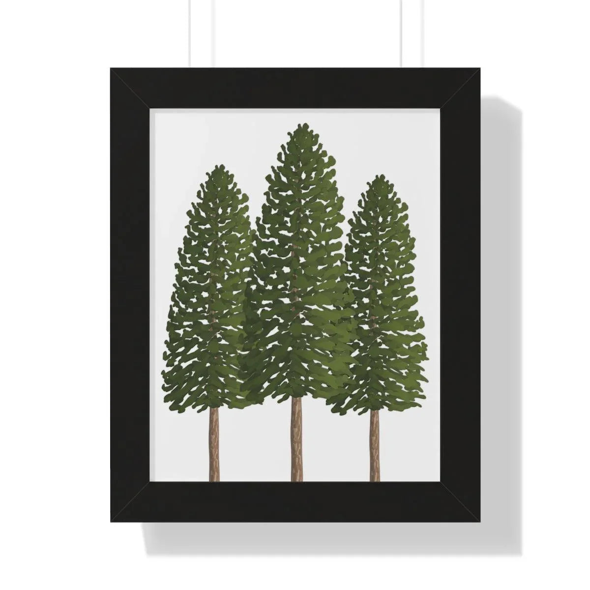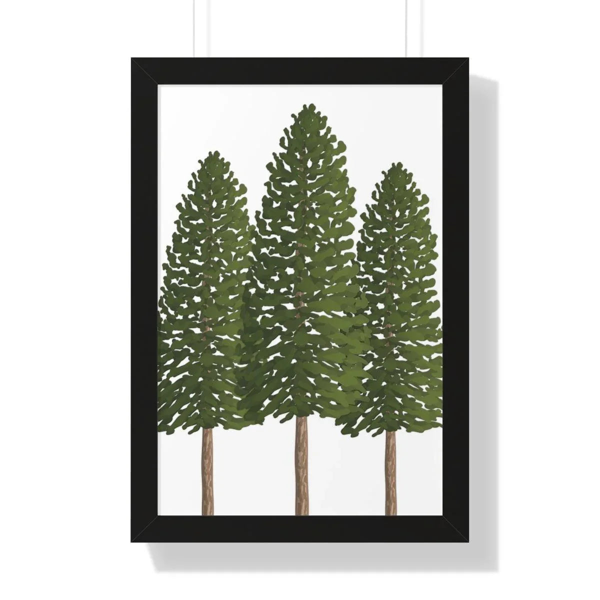 This ponderosa pine print showcases a hand-drawn silhouette of the iconic pine tree, capturing the spirit of the American West in a striking framed wall art piece. Printed on premium 200 gsm paper with a matte finish, this large pine artwork delivers crisp detail and vibrant natural tones that enhance any rustic home poster collection. The protective acrylic cover art preserves the image from dust and damage while maintaining clarity. Available in black frame print, walnut frame poster, or white finishes, this nature wall decor comes ready to hang with a fixed hanging kit for easy installation.