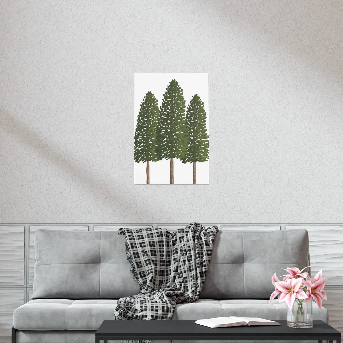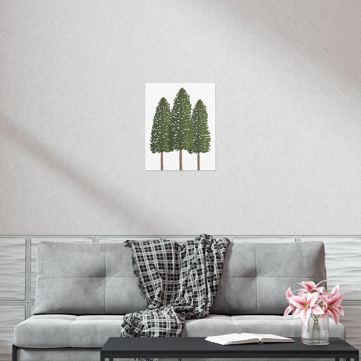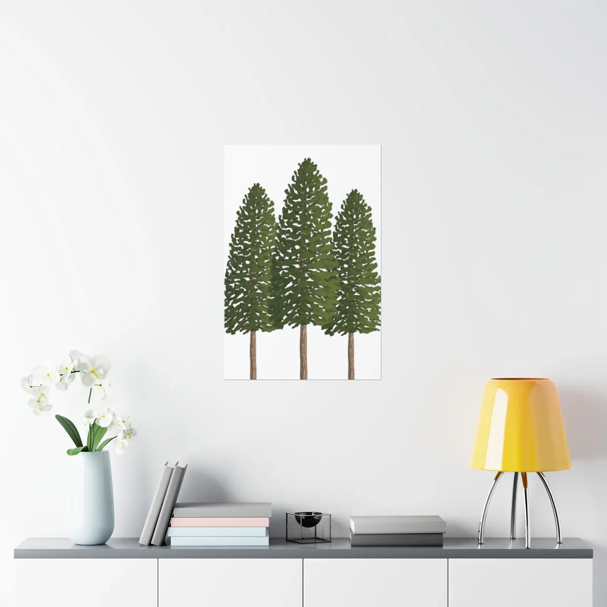 The ponderosa pine print captures the iconic large pine tree native to the American West, bringing a touch of rustic forest charm to your indoor wall art. This large pine print is expertly hand-drawn and printed on museum grade paper art, ensuring vivid detail and lasting quality. Measuring precisely with a tolerance of +/- 1/16", this pine tree poster uses pigmented archival ink print technology for rich, fade-resistant colors that enhance any nature wall decor or botanical print artwork collection.