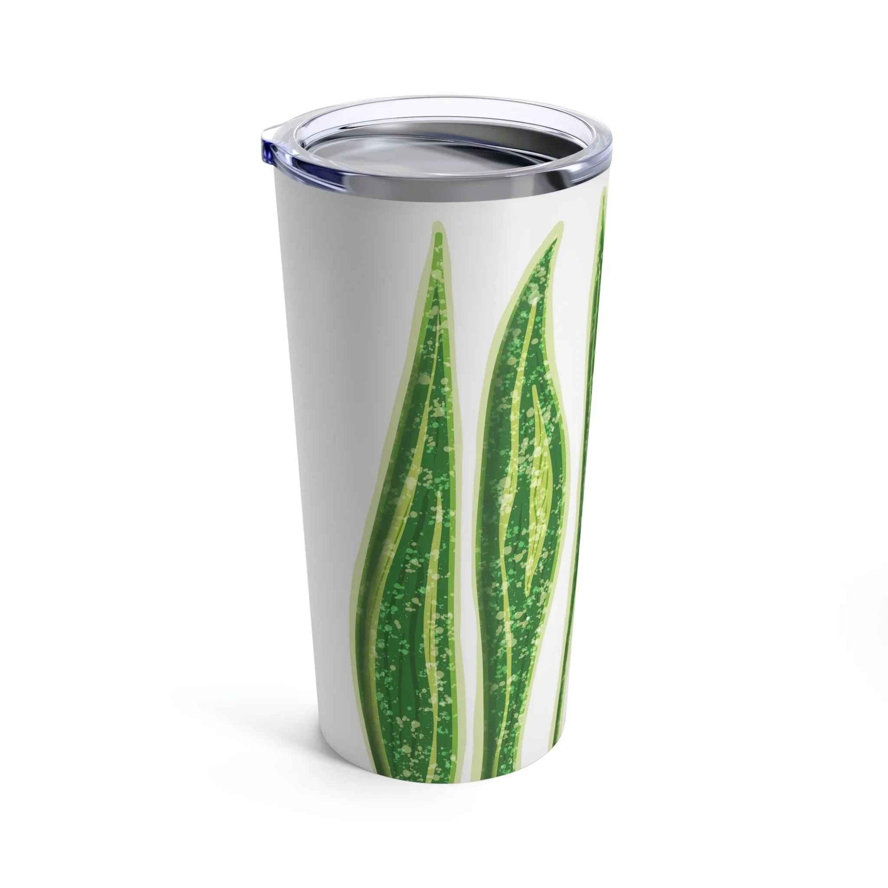 The snake plant tumbler is a vacuum insulated tumbler designed to keep your drinks hot or cold for hours, making it the perfect 20 oz travel cup for daily use at the office, on the road, or outdoors. This stainless steel tumbler combines durability and style with unique hand-drawn snake plant artwork that adds a natural touch to your drinkware collection. Crafted from premium stainless steel bottle material, this insulated drink container offers rust and corrosion resistance for long-lasting use.