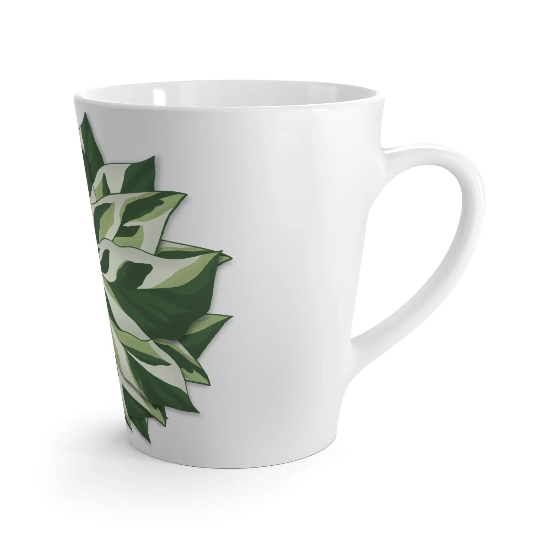 The Calathea White Fusion Mug is a 12 oz ceramic coffee mug designed to bring a touch of nature’s beauty to your daily coffee ritual. Featuring a hand-drawn green leaf mug design inspired by the striking Calathea White Fusion plant, this white ceramic mug combines style and function for an enjoyable drinking experience. Its scratch resistant mug surface preserves the glossy finish mug’s vibrant look, while the easy grip handle mug ensures comfortable use during every sip.