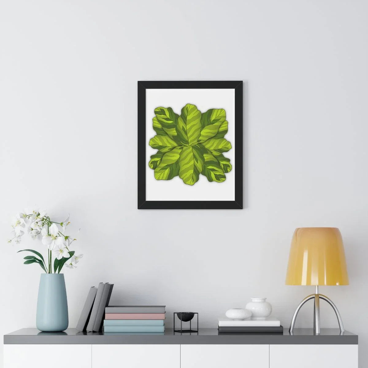 The Calathea Yellow Fusion print showcases a stunning botanical image of the Calathea Yellow Fusion plant, designed to bring vibrant green and lime-yellow marbled leaves into your living space. This framed botanical art offers a unique way to enhance any room with natural beauty and modern style. Each artwork is hand-drawn by Laura Christine Photography & Design, capturing the intricate details of the Calathea leaf artwork for a truly authentic indoor plant print experience.