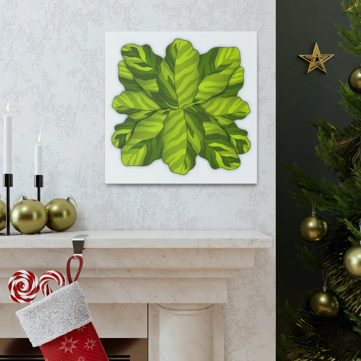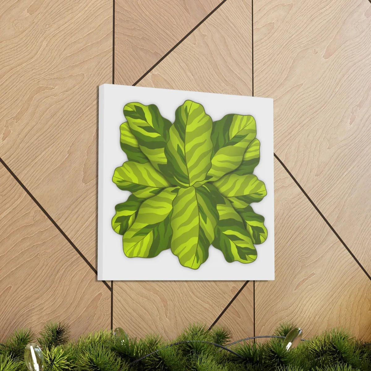 - Hand-drawn botanical canvas print capturing intricate Calathea leaf details