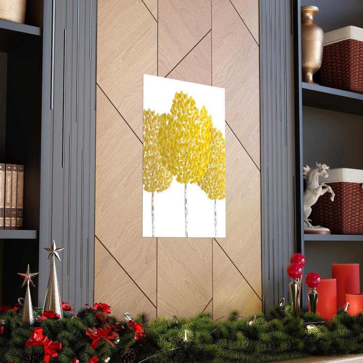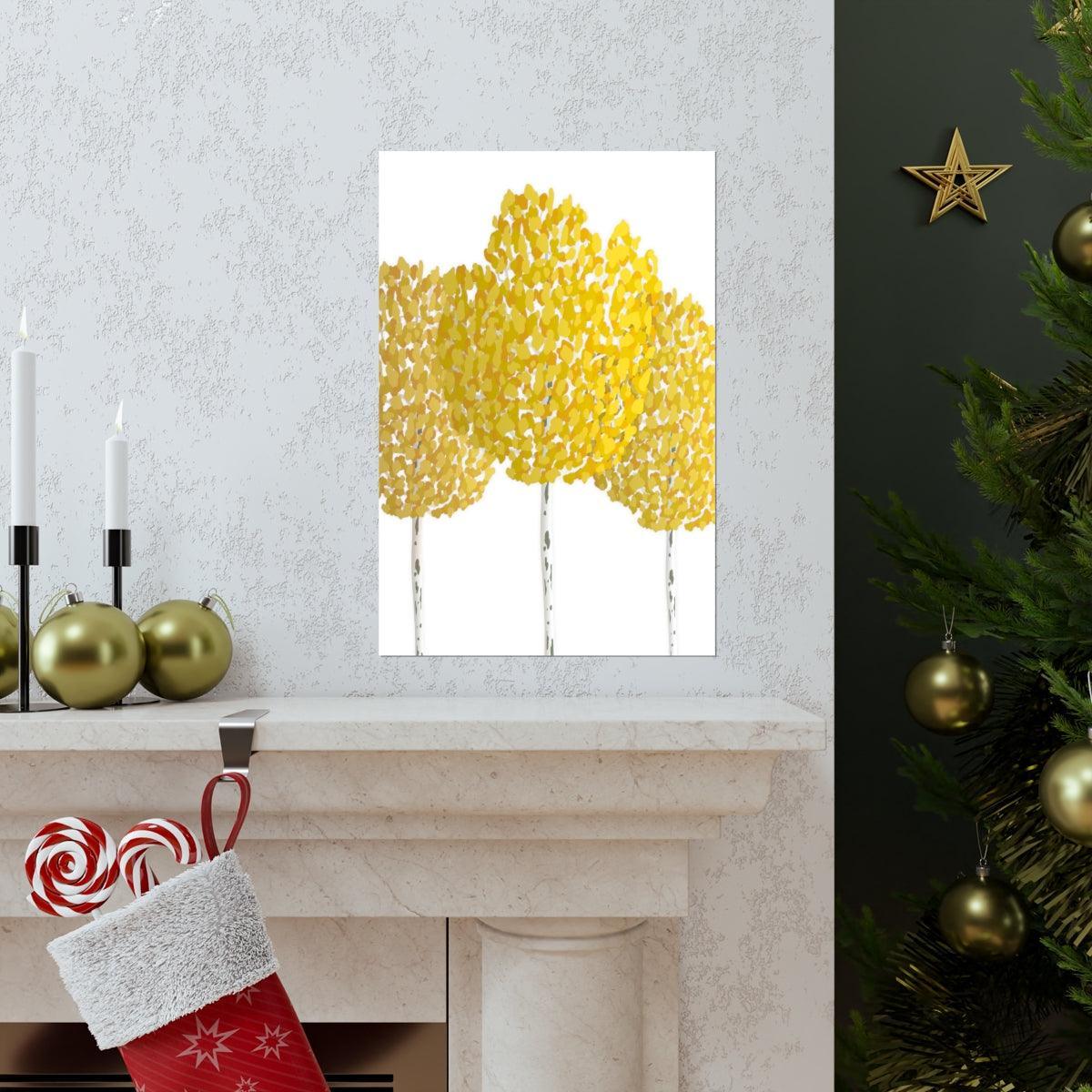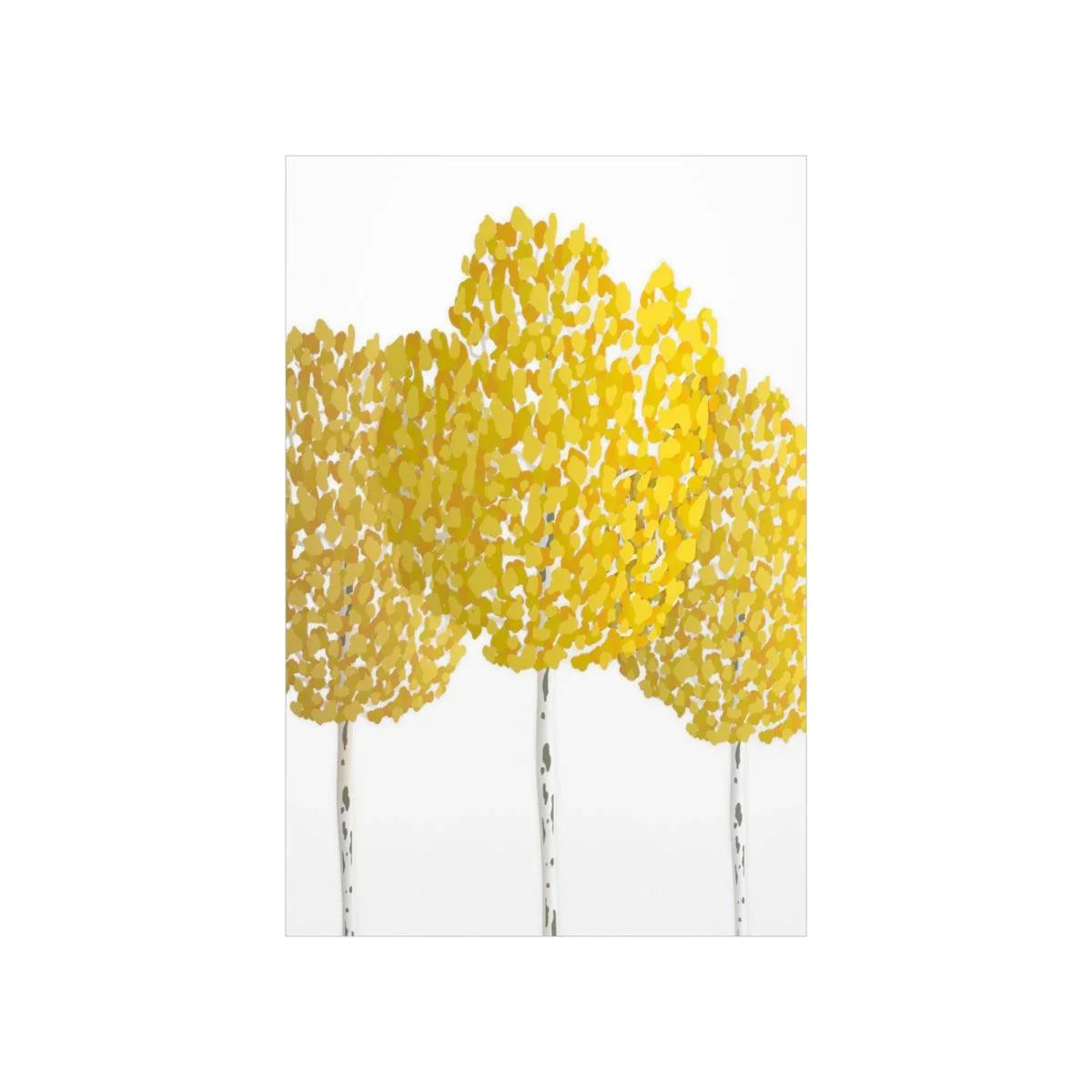 The Fall Aspen Print is a stunning fine art poster on museum grade paper that captures the vibrant yellow foliage of the quaking Aspen tree, bringing nature wall decor into your indoor space with botanical print elegance. This Aspen wall art features hand-drawn artwork by Laura Christine Photography & Design, printed on 175gsm museum grade paper using pigmented archival ink print technology to ensure long-lasting color and detail. Each yellow foliage print showcases the delicate white bark and fluttering green leaves that transform to golden hues in autumn, creating a serene atmosphere in any room. - Printed on premium 175gsm museum grade paper for durability and texture - Uses fade-resistant pigmented archival inks for vivid, lasting colors - Available in multiple sizes with a tolerance of +/- 1/16" to ensure precise fit - Matte finish poster reduces glare and enhances visual clarity - Hand-drawn tree foliage artwork by Laura Christine Photography for authentic botanical style - Perfect for adding nature-inspired charm to living rooms, offices, or bedrooms - Lightweight and easy to frame or mount as indoor wall art This quaking aspen poster brings the beauty of seasonal change indoors, offering a unique botanical print that elevates your wall space. The archival ink print process preserves every detail of the hand-drawn design, ensuring your fine art poster remains vibrant over time. The combination of museum grade paper and matte finish poster surface creates an elegant texture that complements any decor style. Whether you seek subtle nature wall decor or a bold statement piece, this yellow foliage print is an ideal choice for lovers of tree foliage artwork. Laura Christine Photography’s dedication to quality and artistry makes this fine art poster a valuable addition to your collection. The Fall Aspen Print transforms your environment with the calming presence of nature and the timeless appeal of expertly crafted botanical prints.