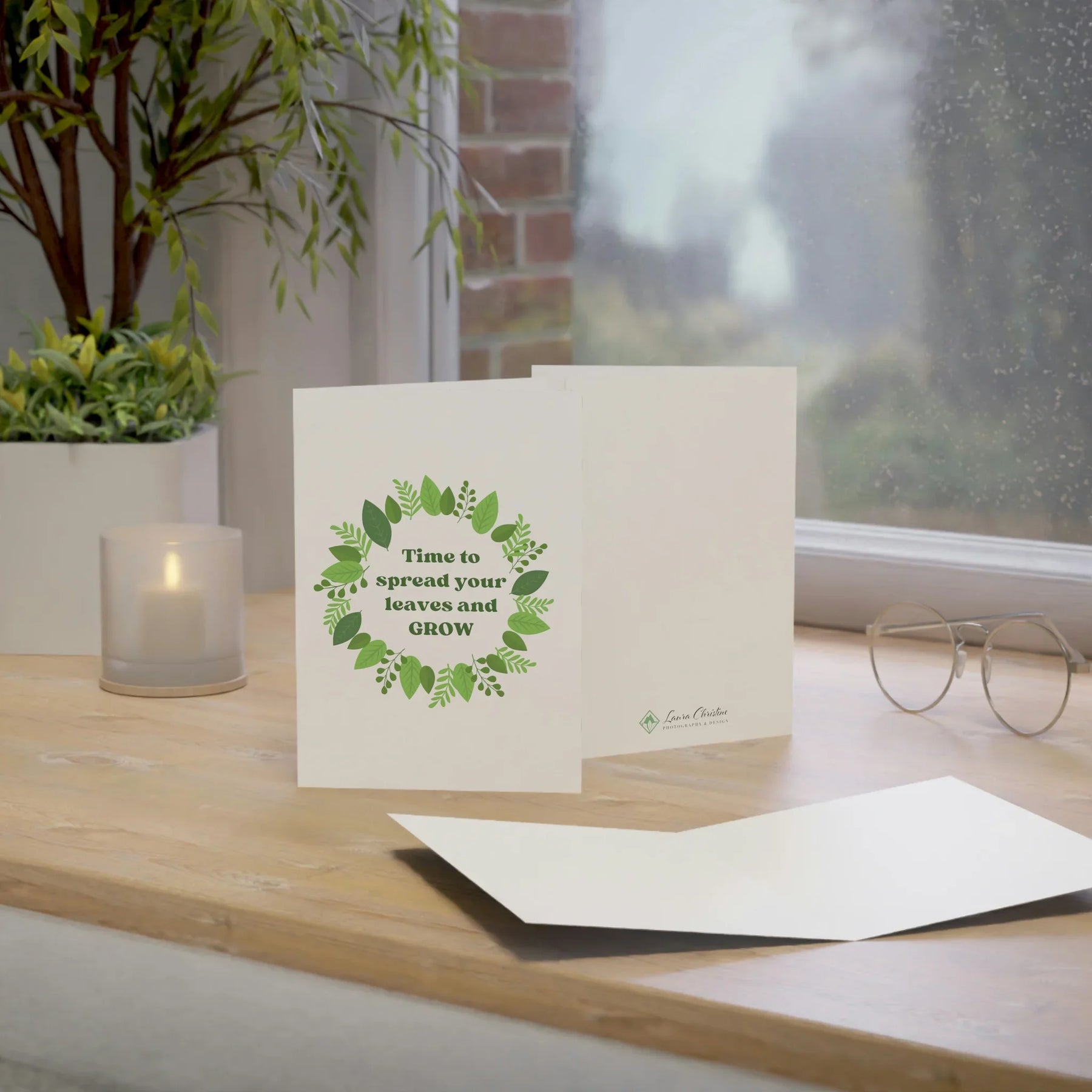 - Size: 5x7 greeting card → standard size fits most envelopes