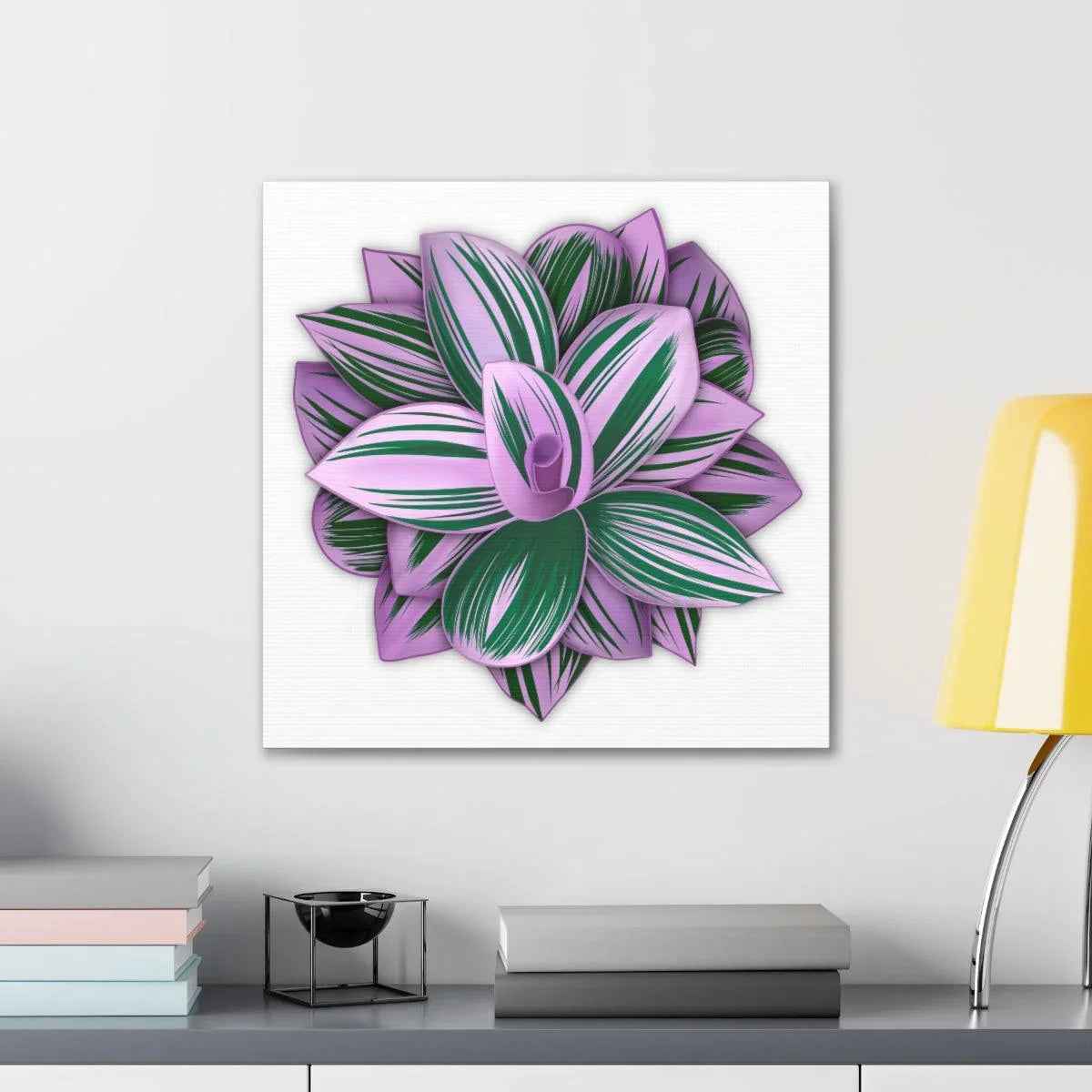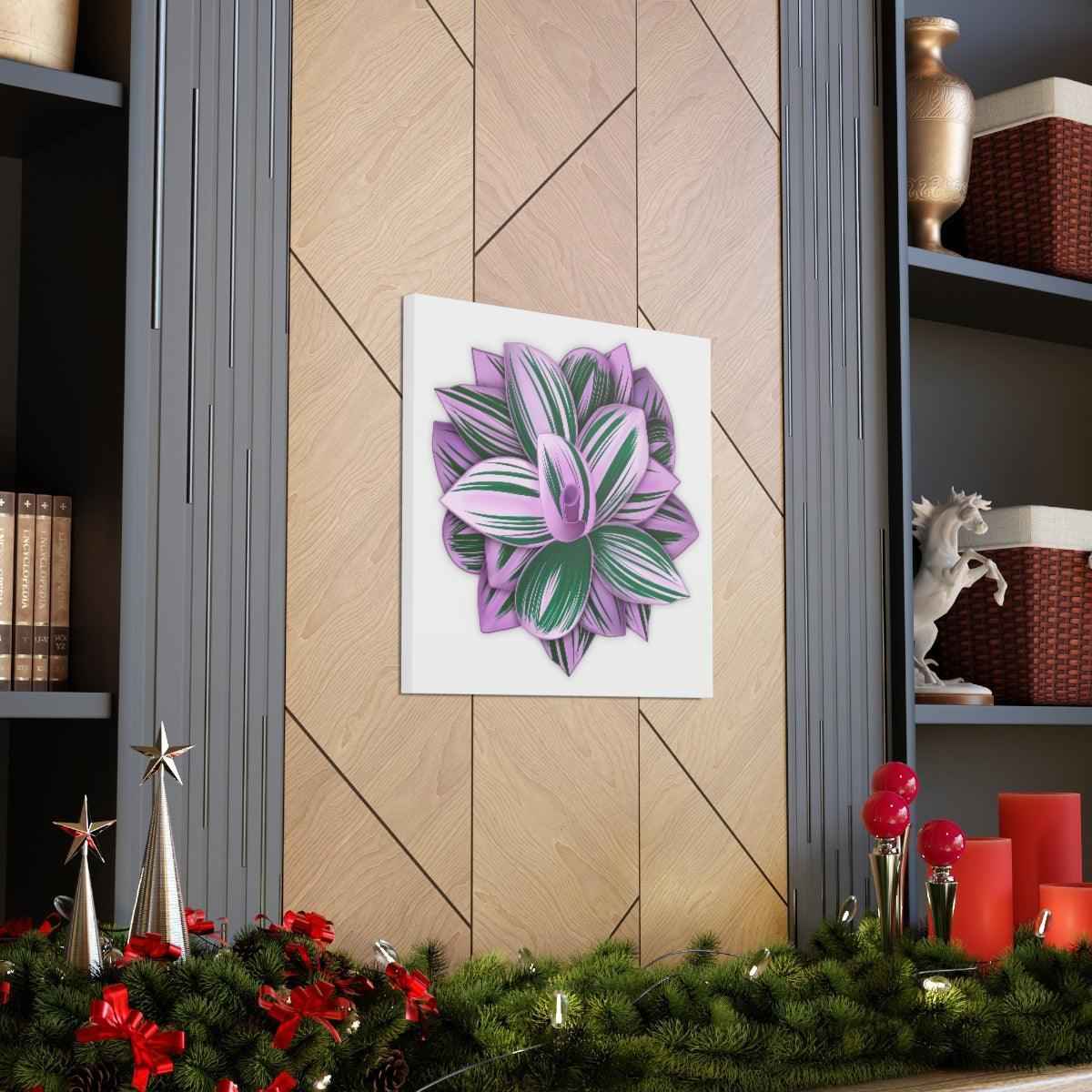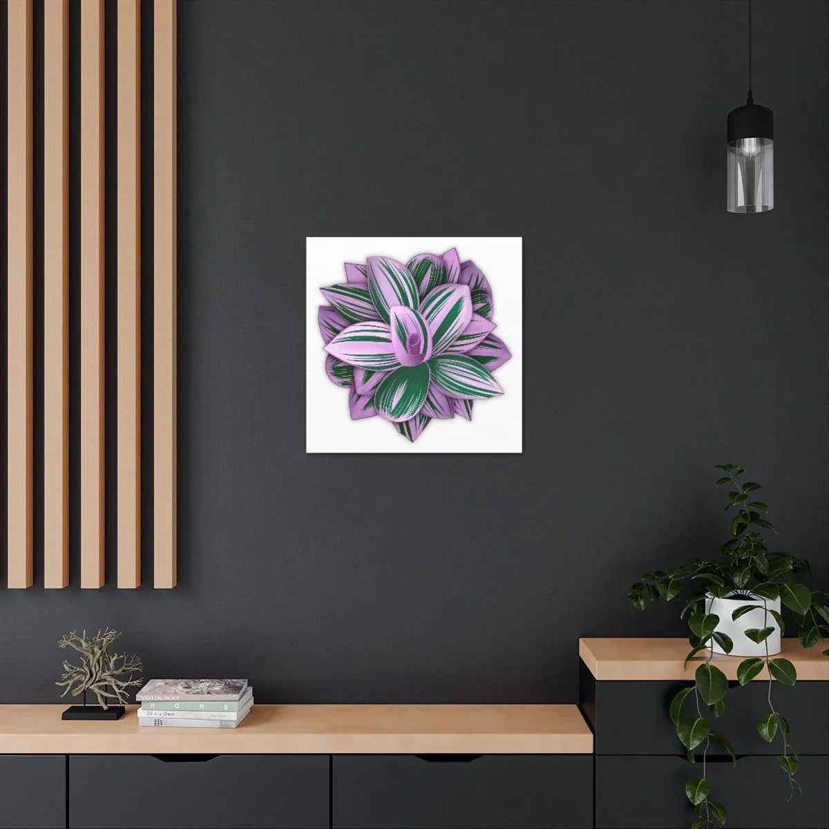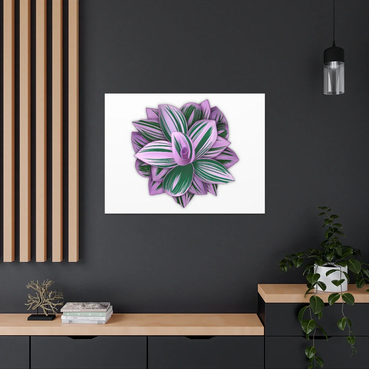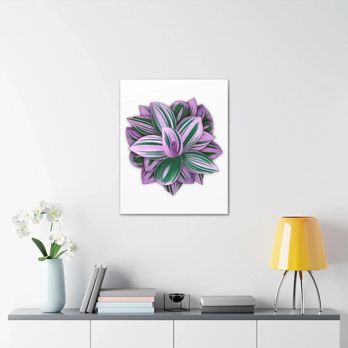The Tradescantia Nanouk Canvas is a botanical indoor wall art piece that brings vibrant color and natural beauty to any living space. Featuring a hand-drawn design, this indoor canvas print captures the striking variegated leaf pattern of the Tradescantia Nanouk plant, with mid-green leaves accented by cream and pink stripes and contrasting magenta-purple undersides. Printed on high-quality stretched cotton canvas, this matte finish print offers exceptional color clarity and a smooth texture that enhances the artwork's vivid details. This botanical canvas art is perfect for adding a splash of color to your living room wall decor or office environment. The colorful plant poster measures precisely to fit standard wall spaces, making it an ideal floral wall hanging for nature-inspired decor enthusiasts. - Hand-drawn variegated leaf print showcasing intricate details - Printed on stretched cotton canvas for durability and texture - Matte finish print reduces glare and highlights color vibrancy - Ideal size for living room wall decor or office display - Created by Laura Christine Photography & Design, known for detailed nature-inspired artwork Every element of this pink foliage artwork is crafted to bring a fresh, natural aesthetic indoors. The combination of mid-green, cream, pink, and magenta-purple hues creates a dynamic visual contrast that enlivens any space. The use of premium materials ensures that the colorful plant poster remains vibrant over time without fading or distortion. Bring home this stunning Tradescantia Nanouk Canvas to enjoy a unique botanical touch that blends artistic craftsmanship with nature’s beauty. Its presence enhances any room with a calming yet lively atmosphere, making it a standout piece among your collection of botanical canvas art.