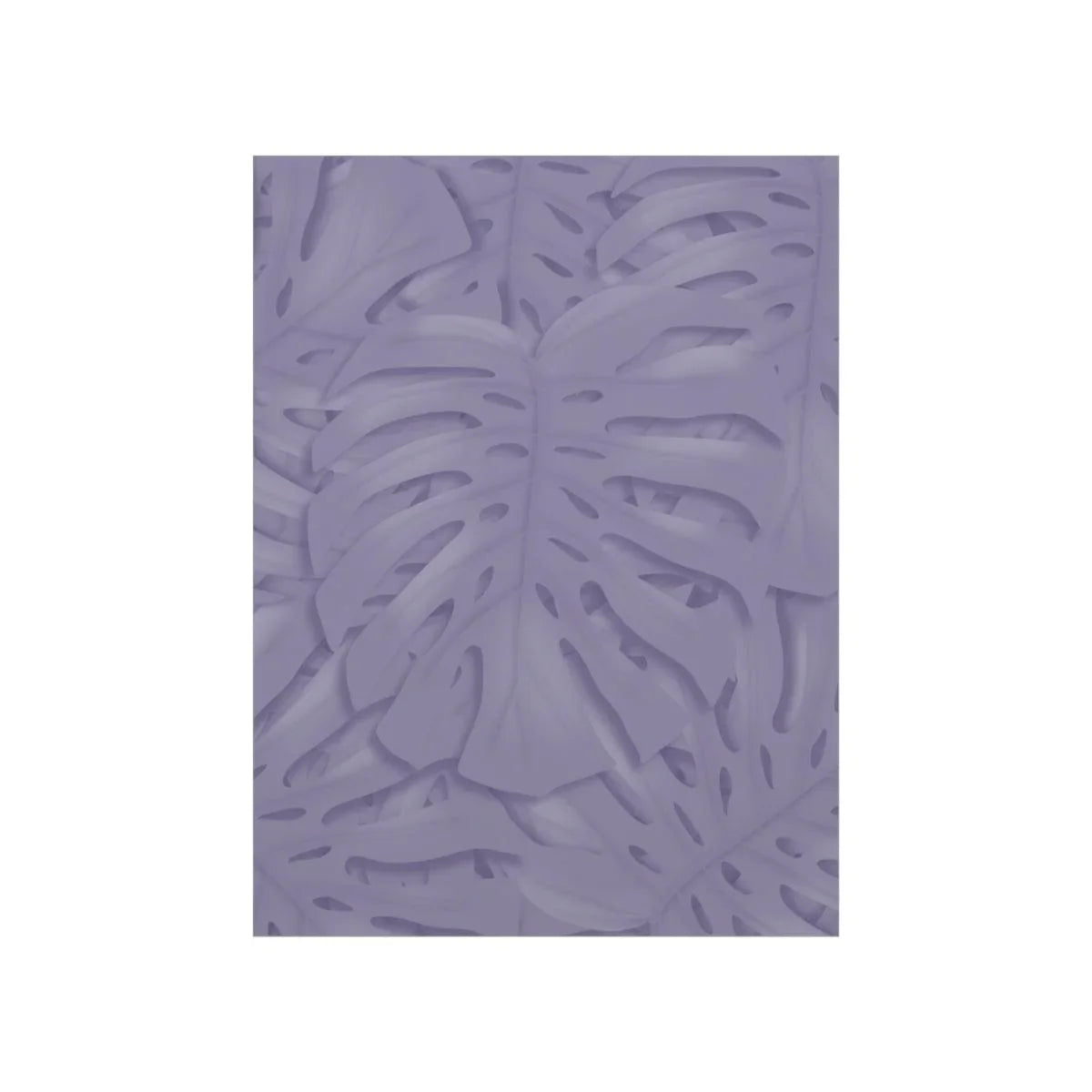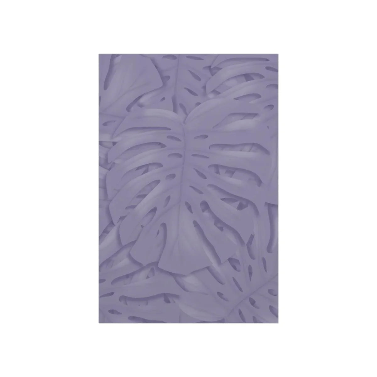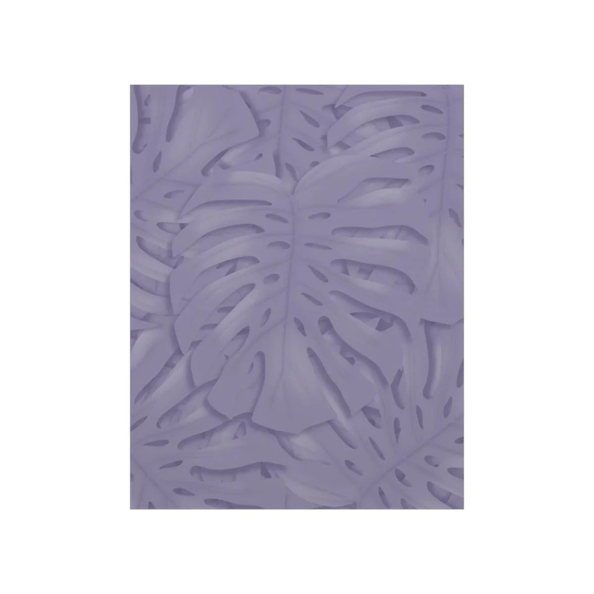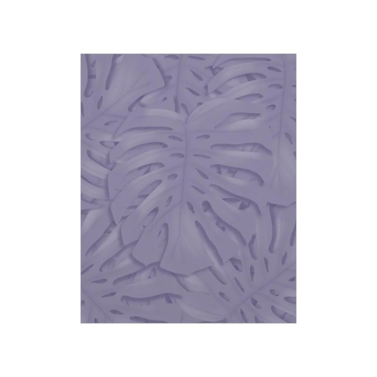 - Hand-drawn violet monstera leaf design captures authentic plant details